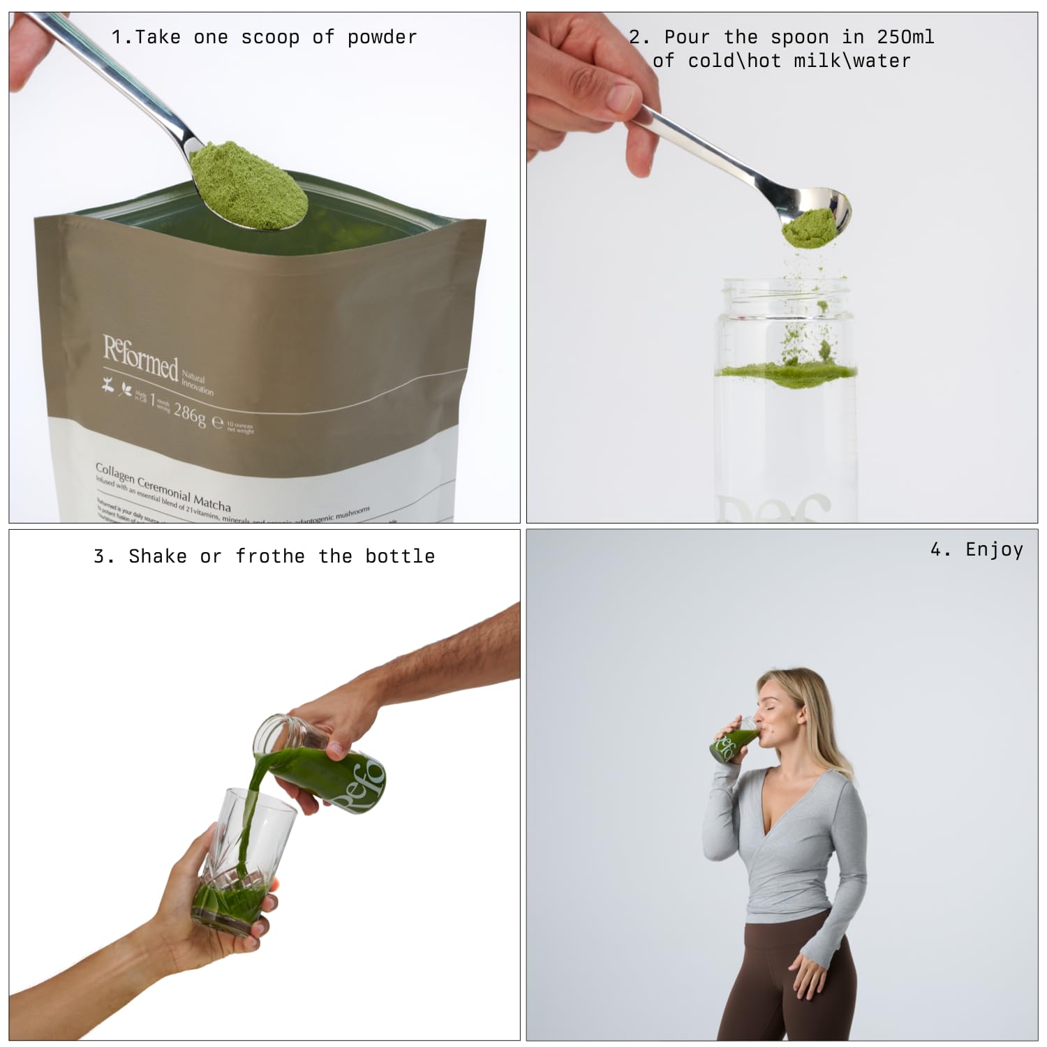 Reformed Collagen Matcha Powder I Hydrolysed Collagen (Marine), Ceremonial Grade, Skin Health, Reduce Bloating, Functional Mushrooms, 21 Vitamins & Minerals, I UK Made I Taster Can