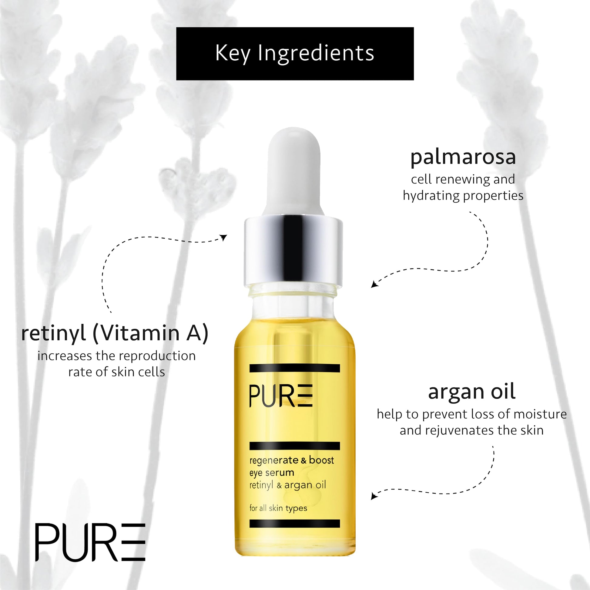 Regenerate & Boost Eye Serum from PURE Spa Skincare 15ml - Vegan, Anti-Ageing Eye Serum with Argan Oil and Vitamin A to Plump and Hydrate