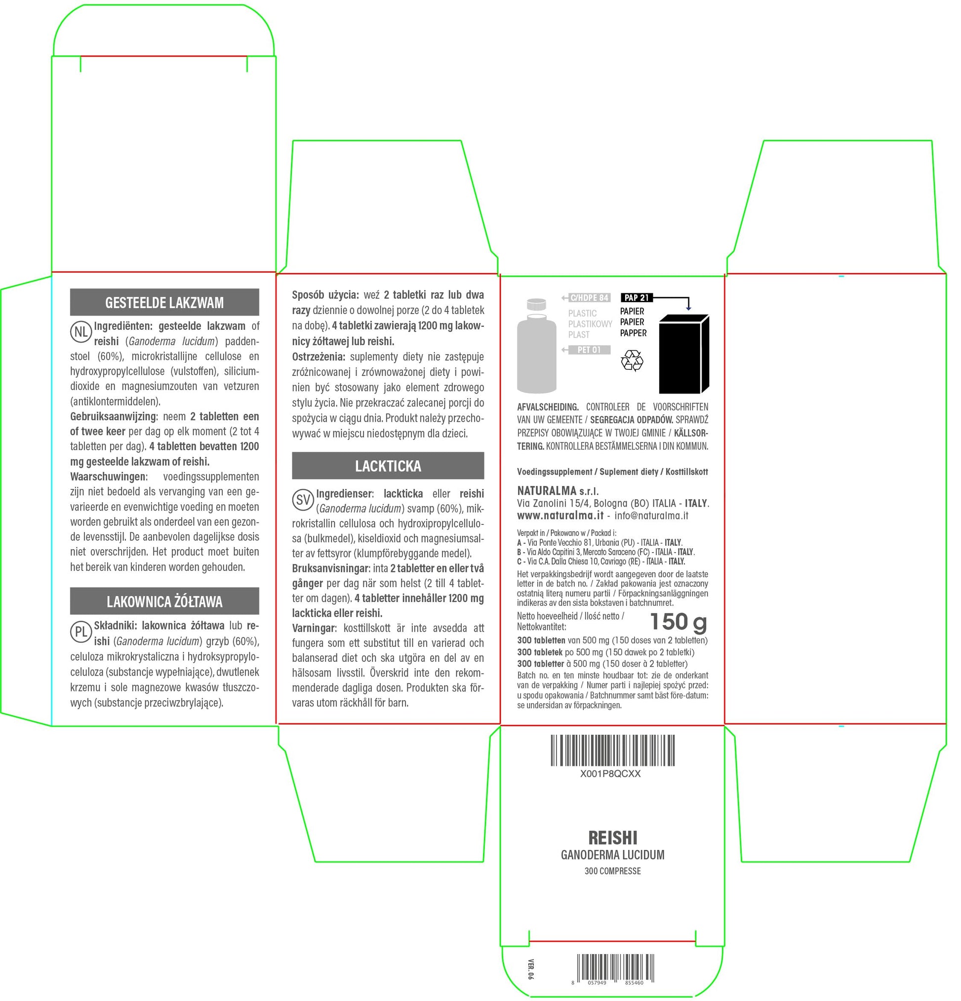 Reishi (Ganoderma lucidum) fungus or mushroom Naturalma - 150 g - 300 tablets - Food supplement - Natural and Vegan