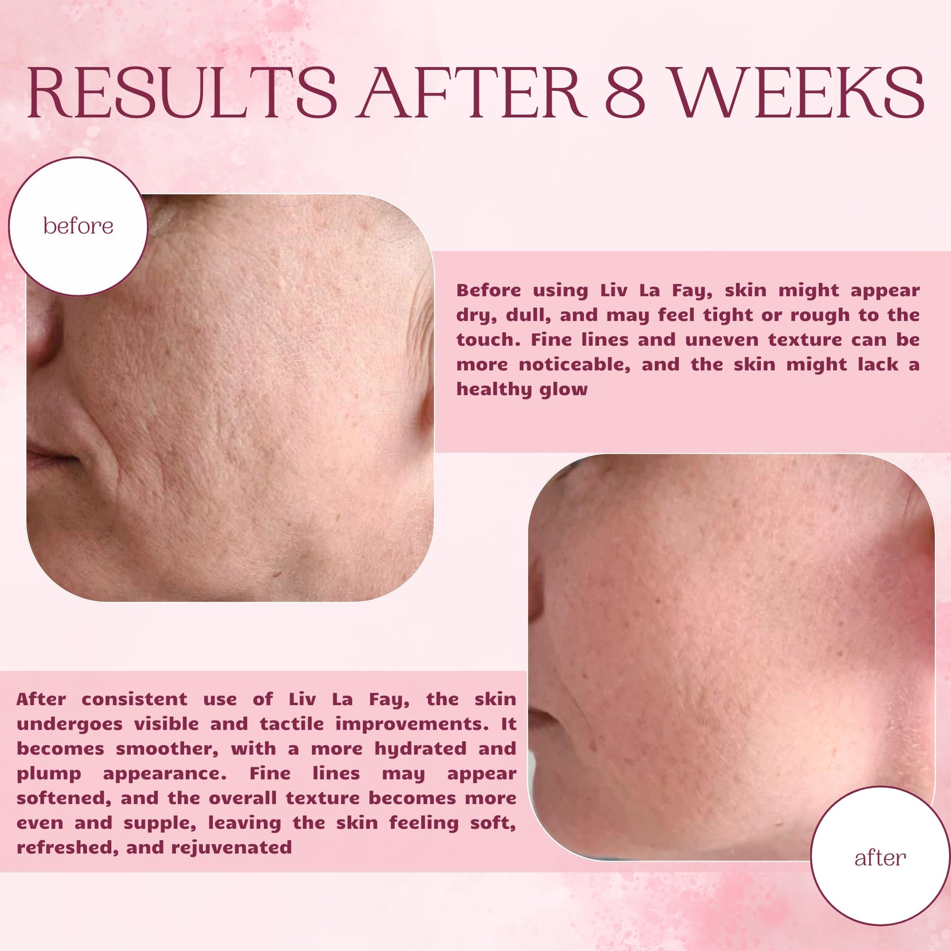 We proudly present the Liv La Fay Eternal Youth Retinol Moisturizer with SPF30, the most powerful Anti-aging Day & Night cream designed to revolutionize your skincare routine. This cream is suitable for application on the face, neck, and décolletage, providing comprehensive skincare benefits across these areas. This groundbreaking Anti-aging moisturizer is engineered to support eternal youth by reducing wrinkles, deeply hydrating the skin, and rejuvenating skin cells. Designed by women in their mid-20s to mid-50s, our team understands firsthand the struggle to find a truly effective anti-aging solution. Our cream is meticulously formulated with a unique blend of highly effective components such as Retinol, Ceramide, high-quality Collagen, Hyaluronic Acid, Aloe Vera extract, Shea Butter, and Vitamins A, E, and B5, working in harmony to deliver unparalleled results. Day Cream> Protects against environmental stressors. The lightweight and non-greasy formula makes it an ideal base for your makeup, ensuring your skin stays nourished and hydrated throughout the day. Night cream> Supports skin repair and renewal during sleep. Leaves your skin looking radiant and revitalized.More Info