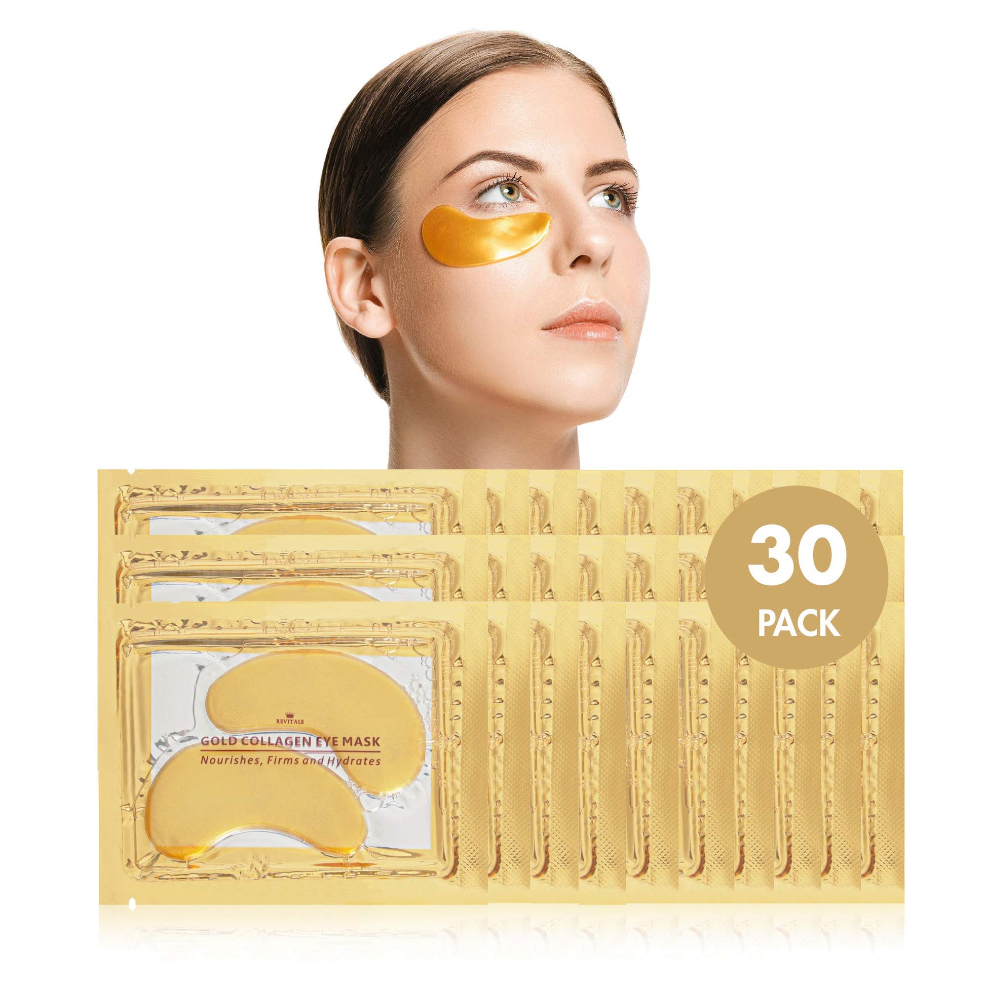 Revitale 24k Gold Under EYE Patches Collagen Gel Mask, Nourishes, Firms & Hydrates, Puffy Eyes & Dark Circles, Hyaluronic Acid (30 Pack)