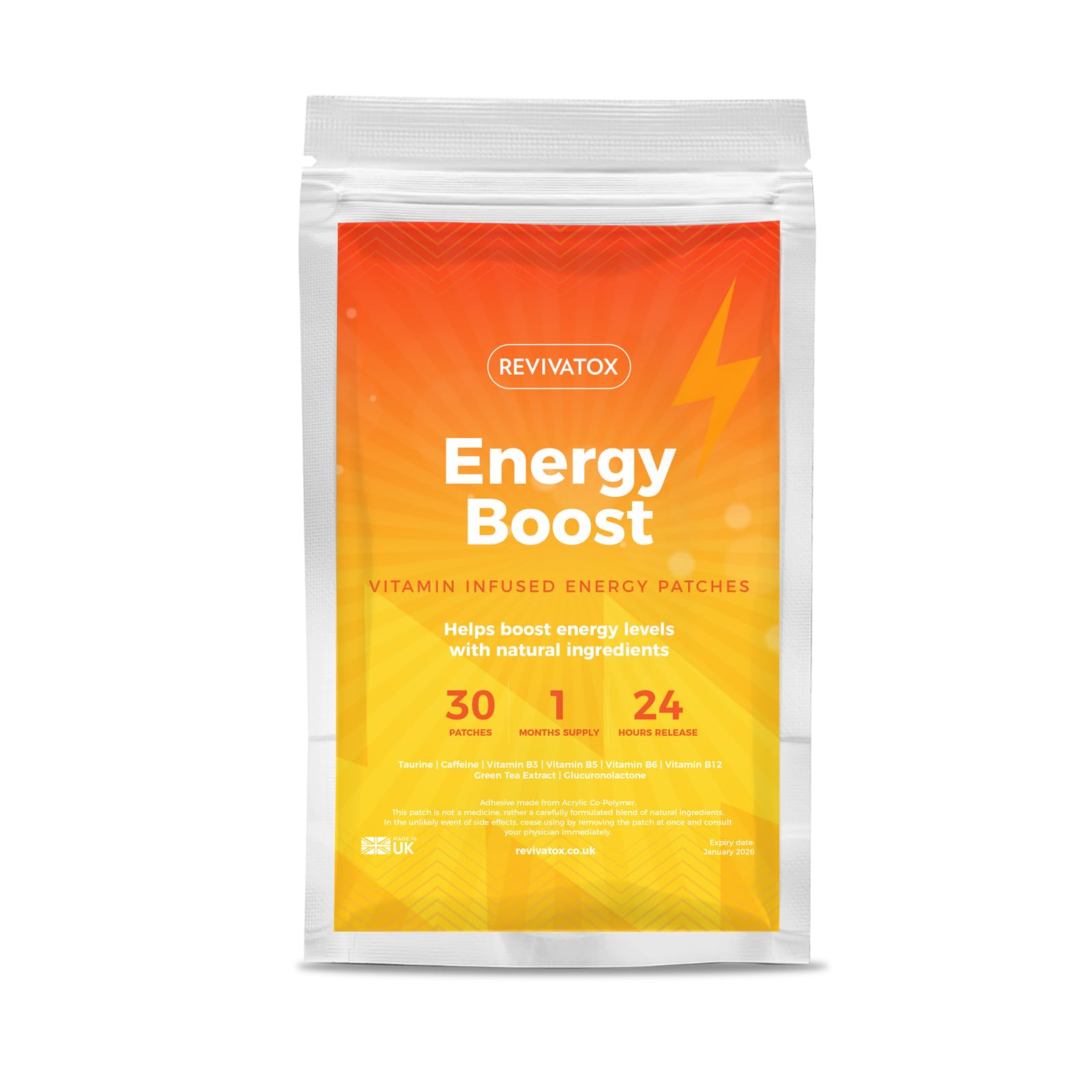 REVIVATOX Advanced Energy Boost Patch for Tiredness, Fatigue, Alertness, Mental Focus | Caffeine, Taurine, Green Tea, Vitamin B3, B5, B6, B12 and More | 30 Pack