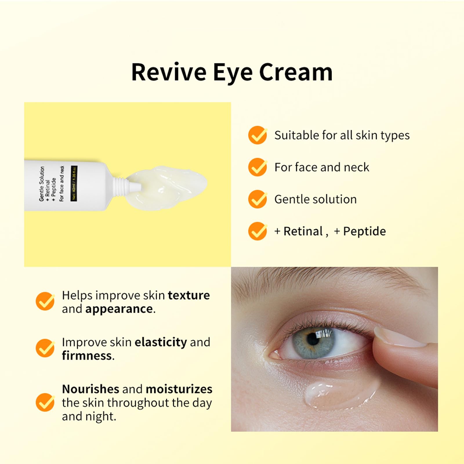 Revive Eye Cream for Face and Neck, Retinol Eyes Cream with Niacinamide & Coffea Arabica, Retinol Revive Eye Cream for Wrinkles, Reduces Wrinkles, Nourishing and Moisturizing, 40ML
