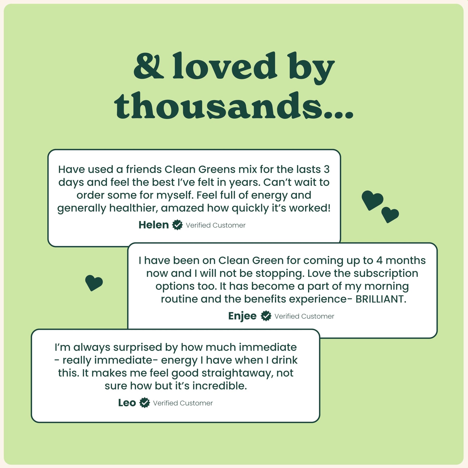 - HOW TO USE: We recommend having a serving of Clean Greens daily, to start feeling its amazing benefits! Creating healthier habits is all about consistency, and we're here to support you on your journey to better wellness! One serving is 5g, which should measure 1 heaped teaspoon. We recommend to add Clean Greens to water with a squeeze of fresh lemon, add to smoothies, juices and healthy snacks. Contains 30 servings to support you every day, all month.