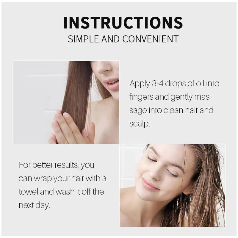 1. Take a few drops of serum on your palm. 2. Apply on your hair thoroughly and evenly. 3. Massage with your fingers on your scalp and throughout your hair. 4. Leave it for 30min or overnight. 5. Use 2 times a day.