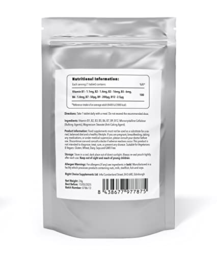 Right Choice Supplements Vitamin B Complex 180 Tablets (6 Month Supply) - Contains All Eight B Vitamins in 1 Tablet, Vitamins B1, B2, B3, B5, B6, B12, Biotin & Folic Acid