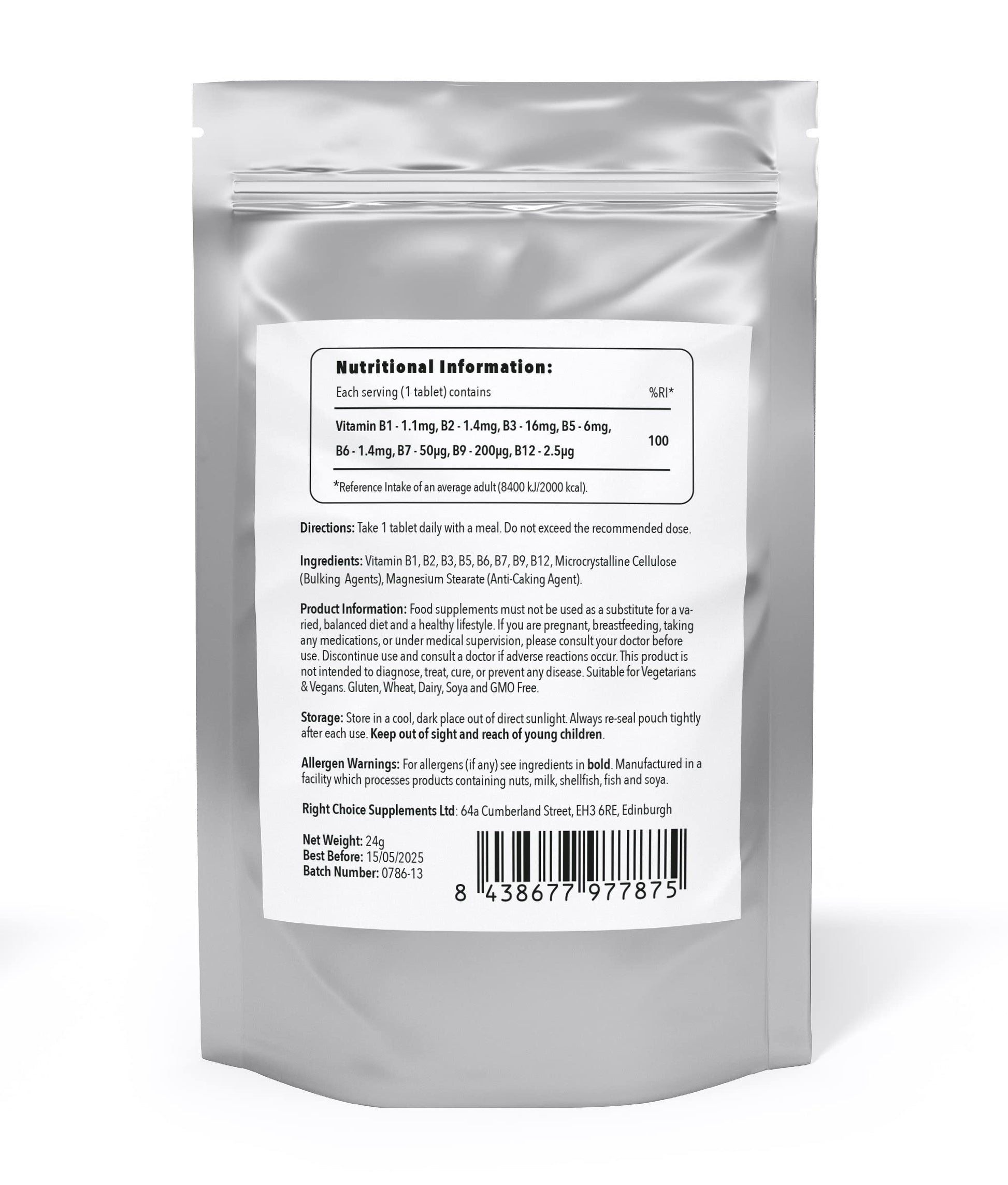 Vitamin B Complex Our vitamin B complex contains all eight vitamin B's. This includes Thiamine (Vit B1), Riboflavin (Vit B2), Niacin (Vit B3), Pantothenic acid (Vit B5), Pyridoxine Vit B6, Biotin (Vit B7), Folic Acid (B9), Folate Vit B12 Why Buy PRIME NUTRITION Vitamin B Complex * ADVANCED FORMULA - All 8 vitamin B vitamins in one daily tablet. Thiamin (Vit B1), Riboflavin (Vit B2), Niacin (Vit B3), Pantothenic acid (Vit B5), Vit B6, Biotin (Vit B7), Folic Acid (B9), Vit B12. Can REDUCE tiredness and fatigue, improve mental performance and a whole host of other health related benefits. UK PRODUCED.More Info