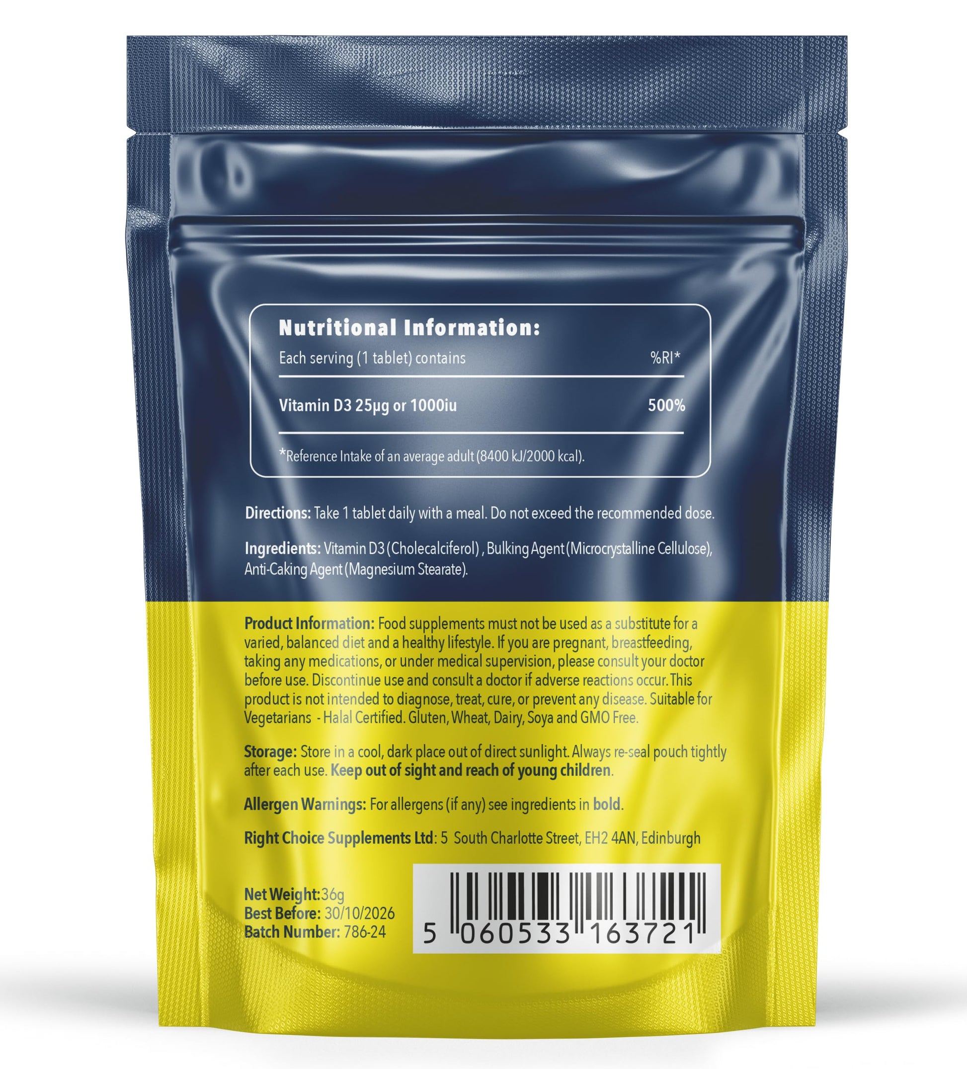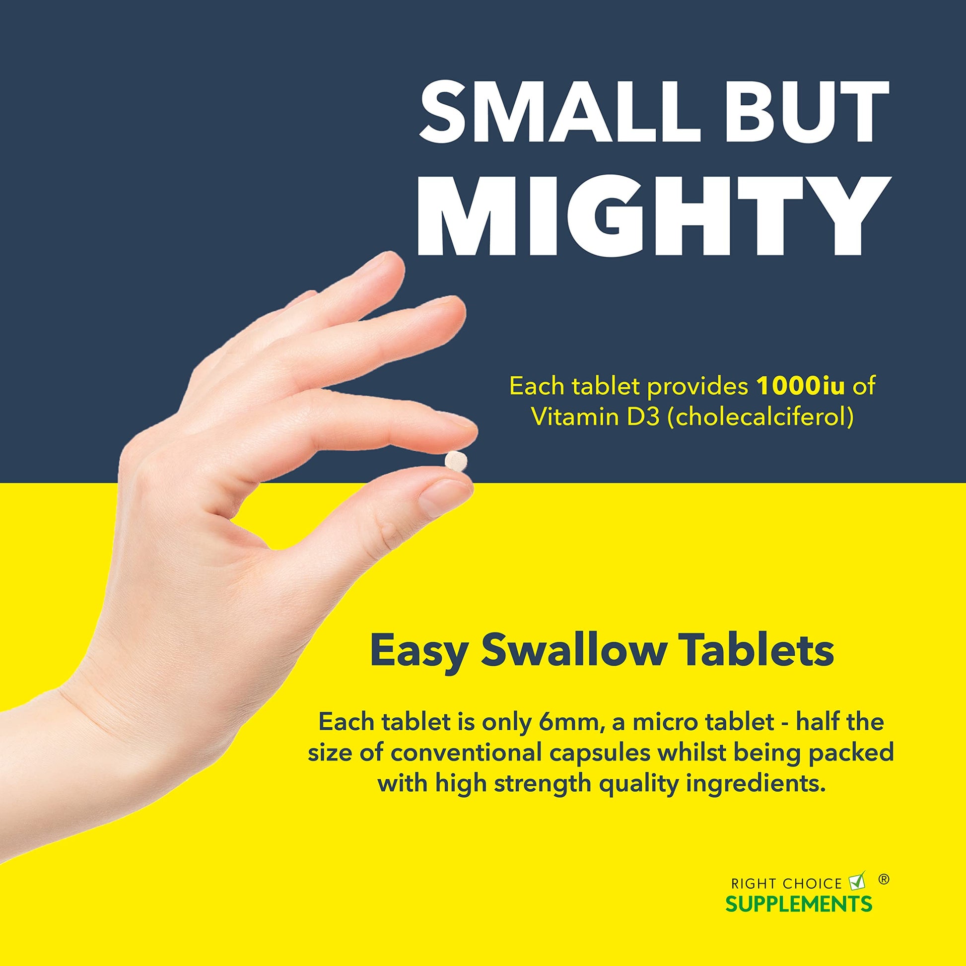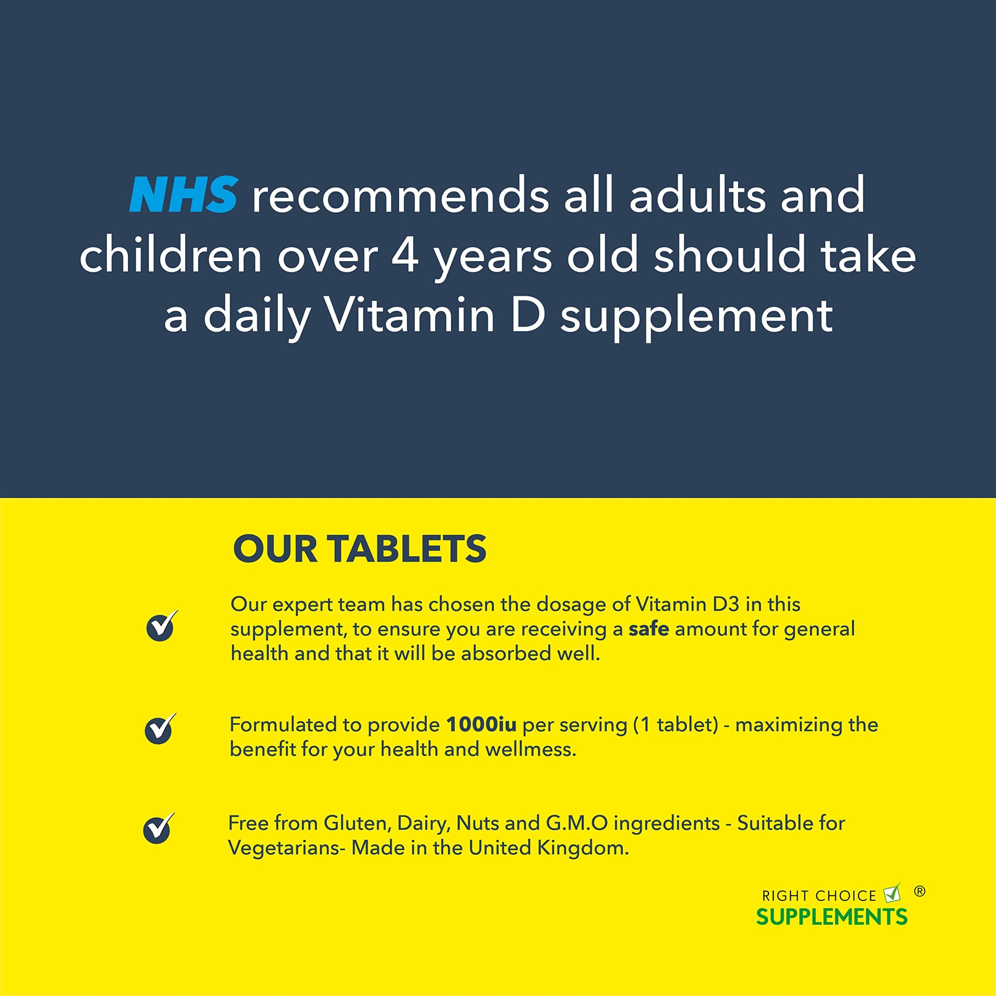 Right Choice Supplements Vitamin D 1000iu - 1 Year Supply, 365 Easy-Swallow Vitamin D Tablets, Vegetarian Vitamin D3 1000iu, Optimal Strength Immune Support Vitamin D Supplement