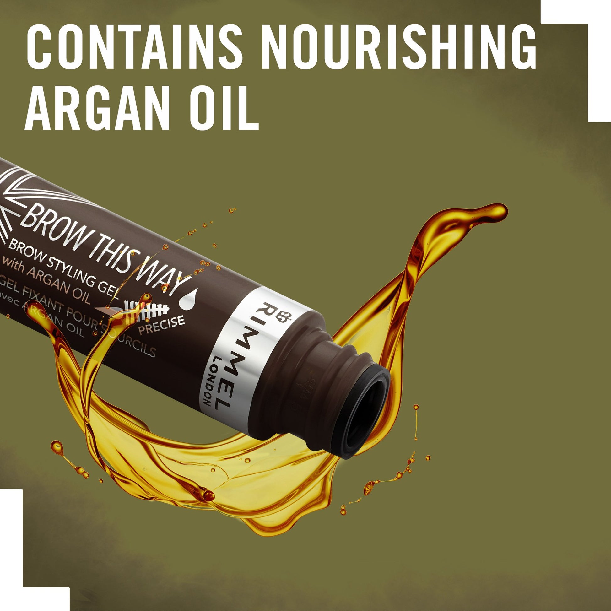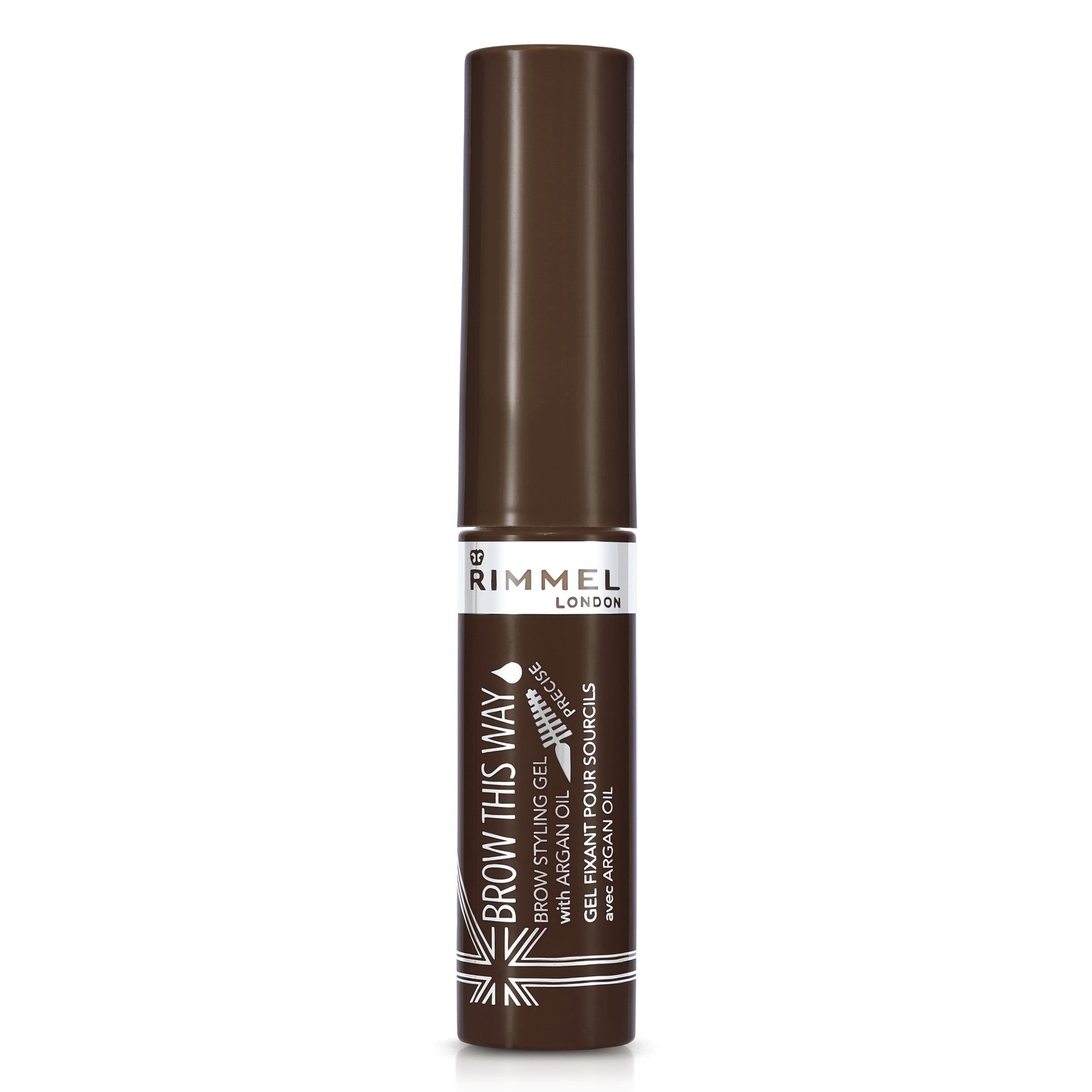 Rimmel London Brow This Way Brow Styling Gel with Argan Oil, Tames and Sets Brows, Dark Brown, 5 ml