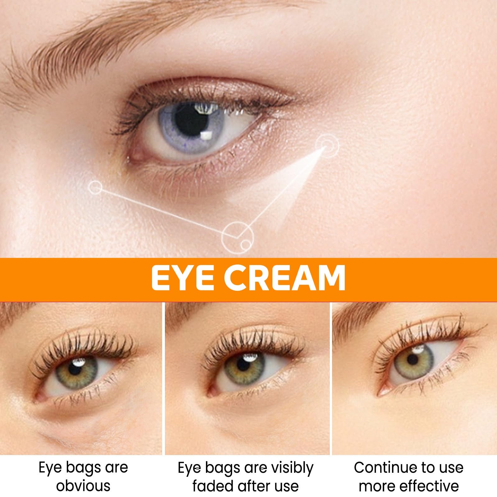 3.Persistent use:The continuous use of this eye wrinkle cream has a better effect,helping to fade dark circles and fine lines,and making the eye area tighter and brighter.