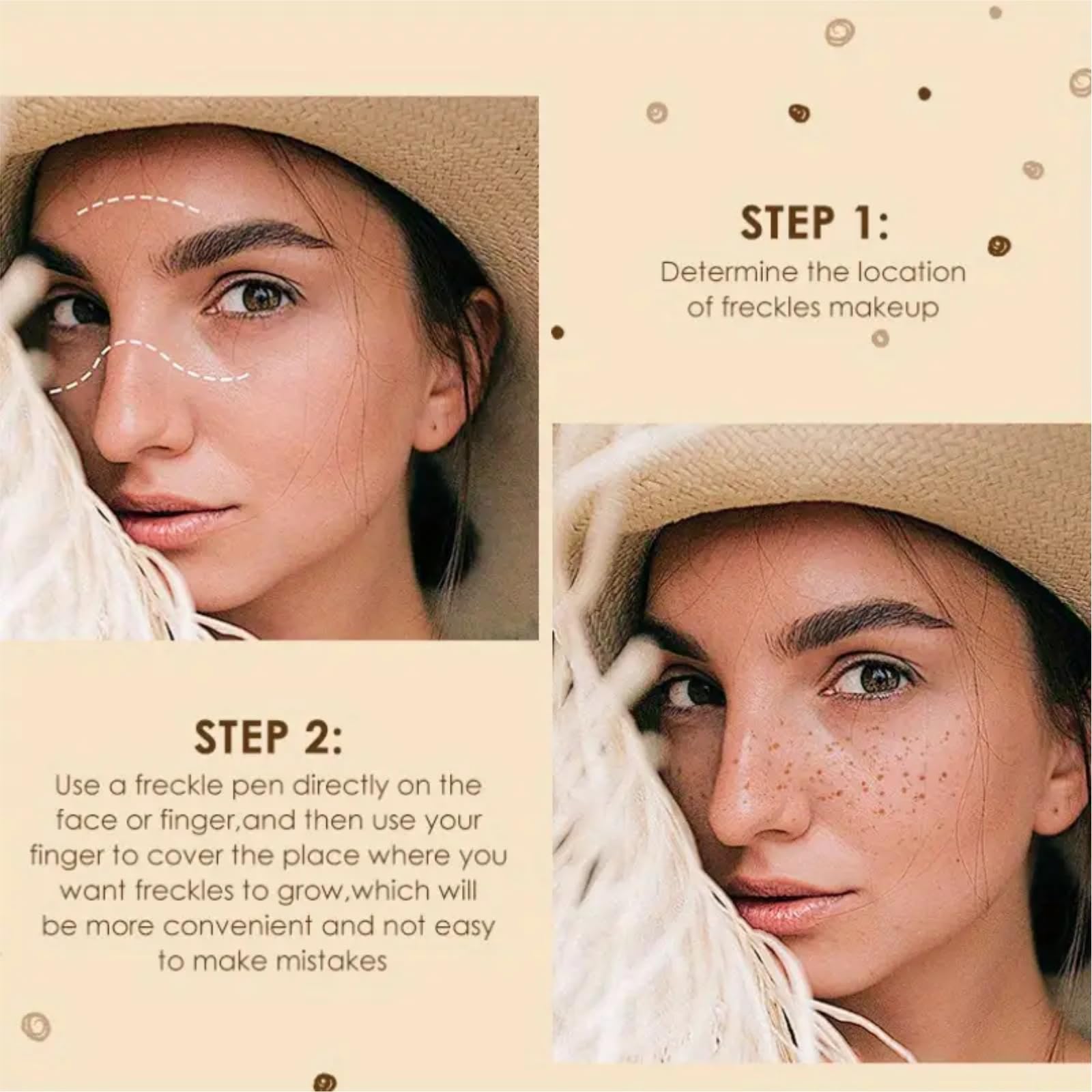 3.This liquid freckles pen is compact and portable.Carrying our freckle stamp face when you go out enables you to touch up your makeup anytime and anywhere,the freckle pen keeps your makeup intact for a long time.