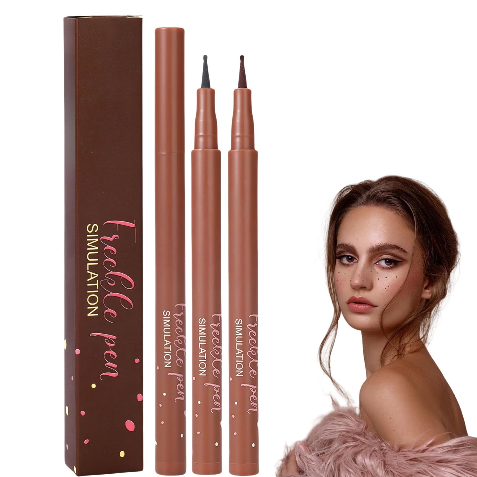 Ruojiar 2 Colors Freckle Pen Set,Faux Freckle Makeup Pen,Soft Dot Spot P/en for Natural Lif/elike Makeup,Easy to Color & Waterproof,Smooth Strokes,Smudge-free,Unique Round Tip Design(Gray+Coffee Brown)