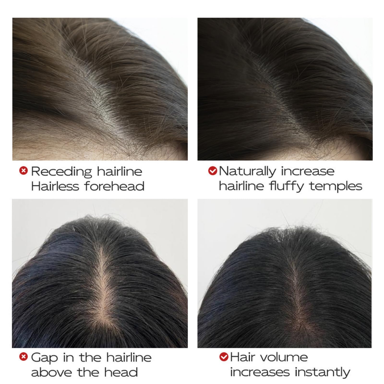 3.This hair thickening products for women features a dual-head design.One end is the applicator and the other is the brush.When using our hair fibres black,you don't need to get your hands dirty.