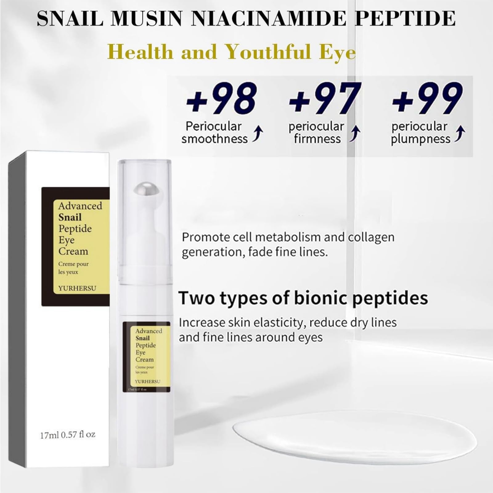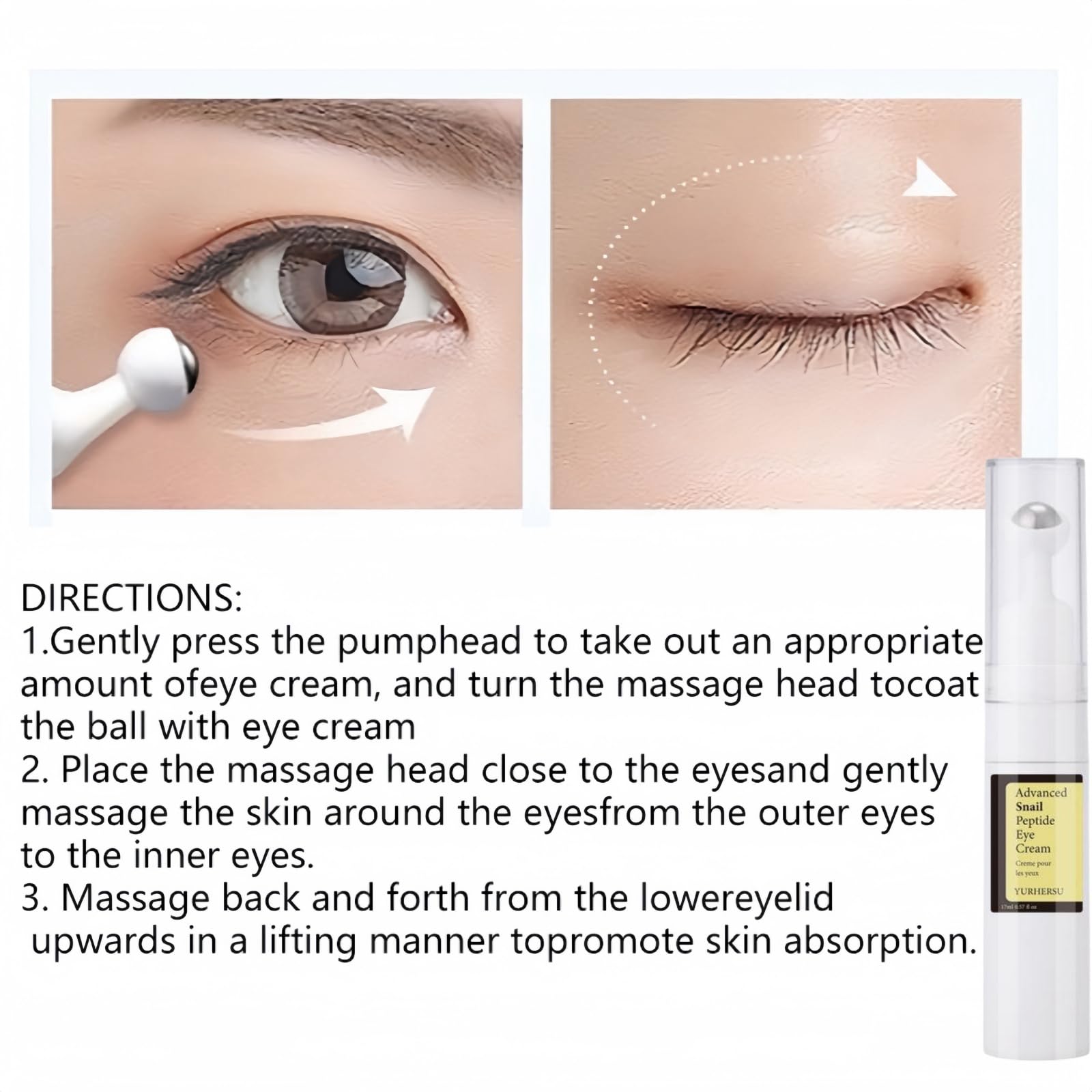 Ruojiar Eye Cream for Dark Circles and Puffy Eyes,Anti Wrinkle Eye Cream,Snail Peptide Energetic Eye Roll-On,Under Eye Roller Cream,Hydrating and Firming Eye Serum Creams,Eye Repair Cream,Eye Bags Remover
