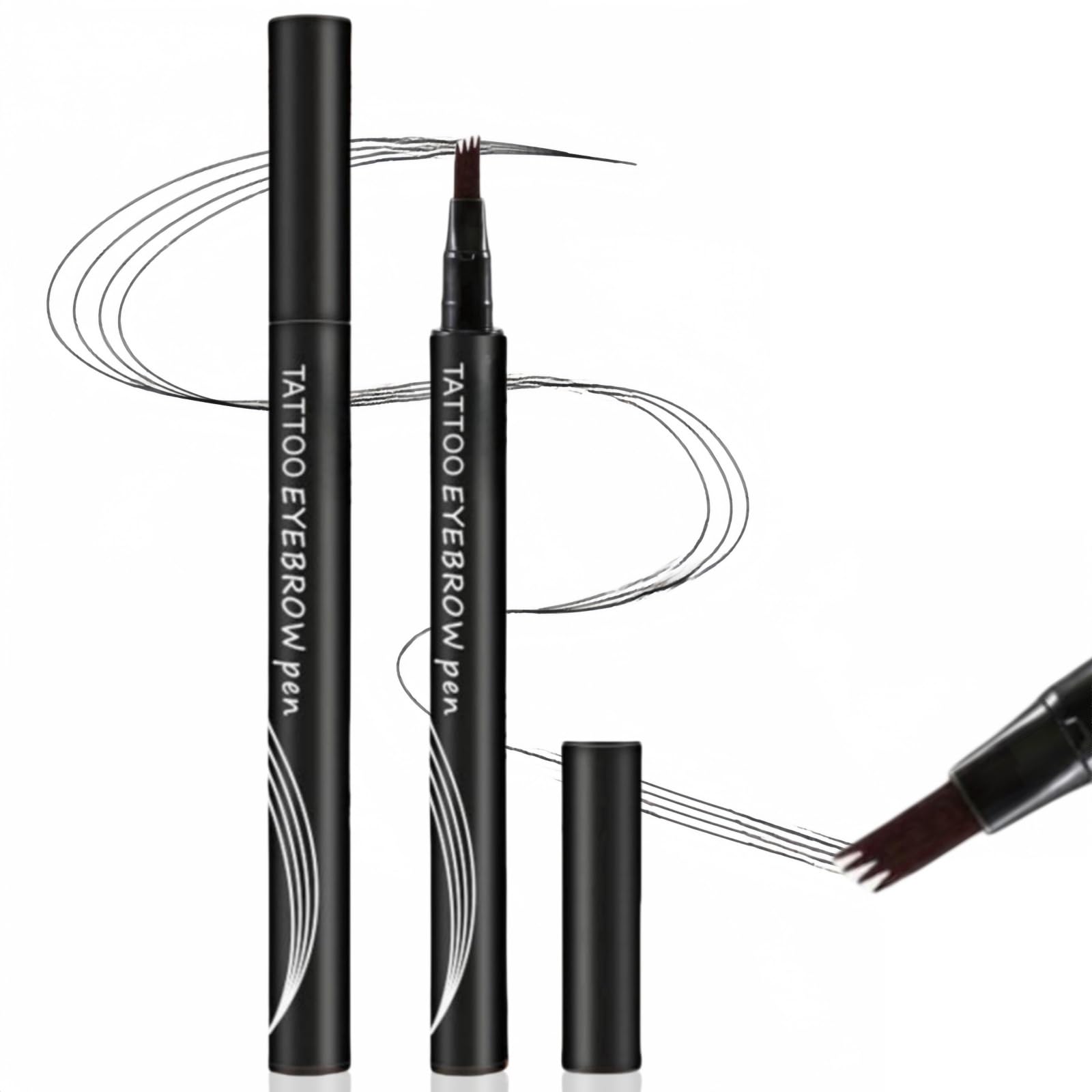 Ruojiar Tattoo Eyebrow Pen with 4 Fork Tip,Eyebrow Pencil,Natural 3D Eyebrow Hair Make Up Pen,Liquid Eyebrow Fork Tip Pen,Waterproof Brow Pen,Long-Lasting Smudgeproof Eyebrow Pen,Brow Pencil for Women(Black)
