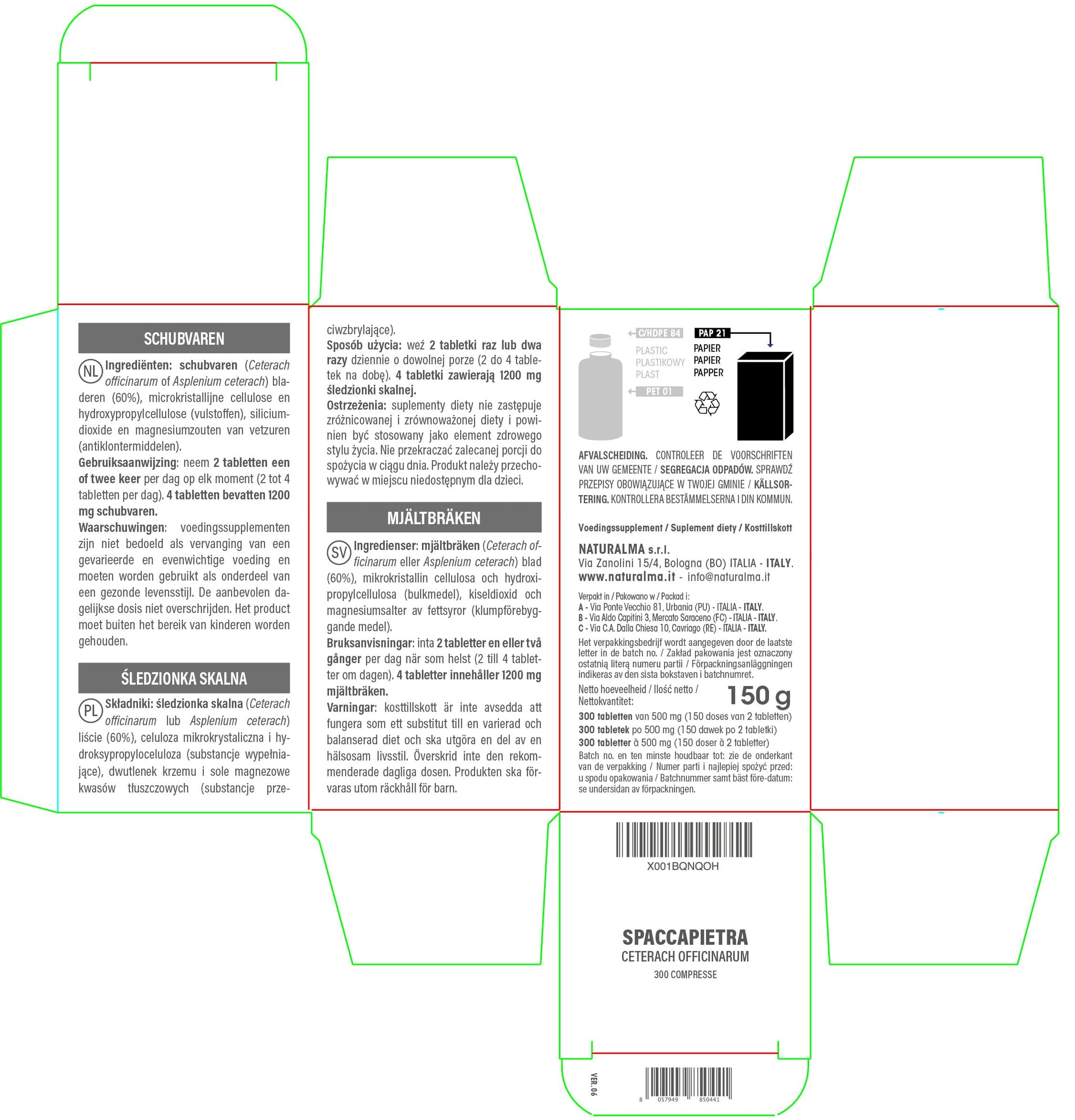 Rustyback fern (Ceterach officinarum or Asplenium ceterach) leaves 300 TABLETS (150 g format). All NATURALMA food supplements are produced using natural and top quality ingredients. Our company selects the best herbs to ensure a high concentration of functional and nutritional substances. Our products are suitable for vegans and do not contain preservatives, colourants, flavourings and synthetic sweeteners. NATURALMA food supplements are produced and packaged in ITALY. Product in the form of pills and tablets (they are not opercula, capsules or softgels). 1 tablet contain 300 mg of Rustyback fern.More Info
