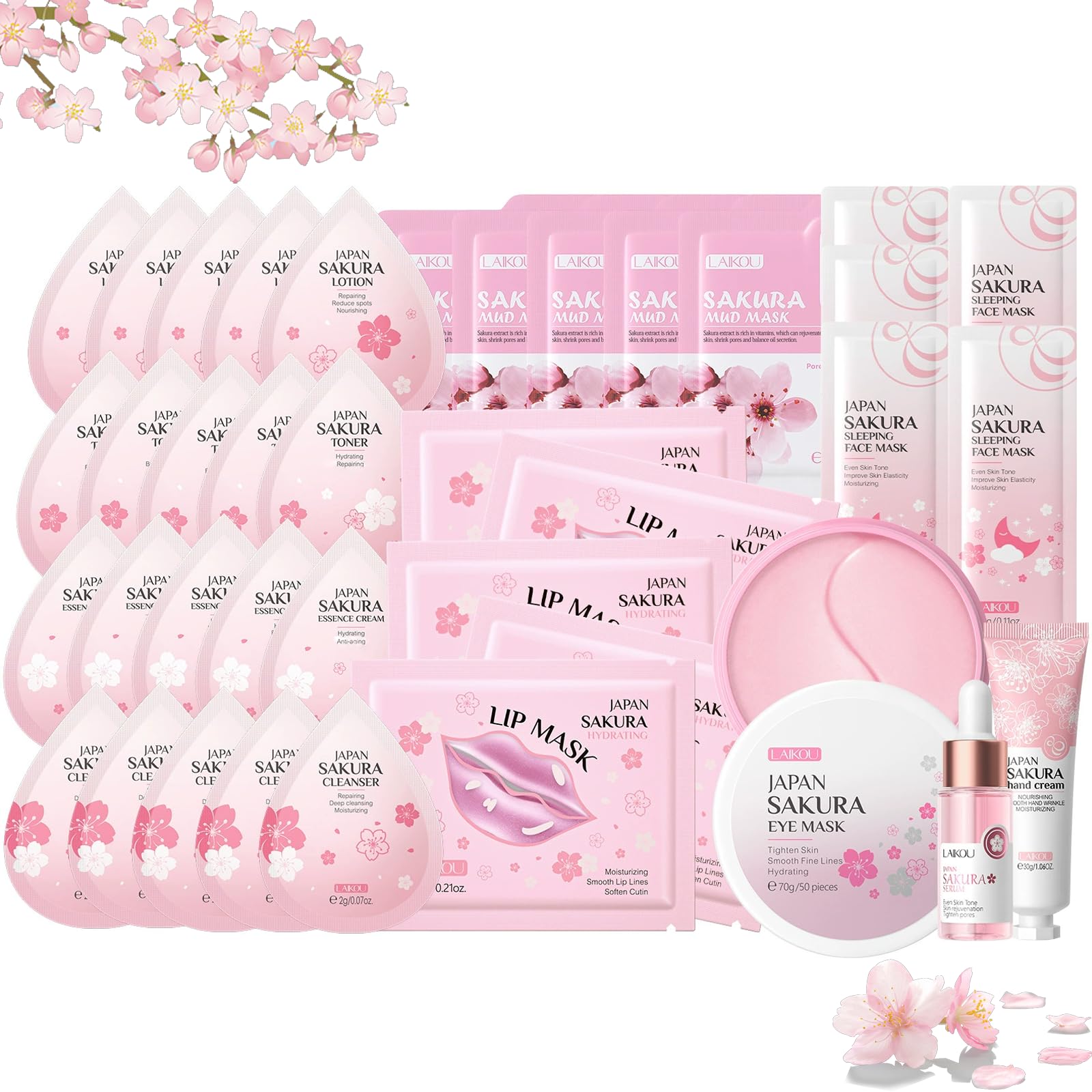 SALROAL Sakura Skin Care Sets & Kits, 38PCS Skin Care for Teenage Girls, JAPAN Sakura Skincare Set, Cleanser, Serum, Hand Cream, Eye Mask, Sleep Mask, Lip Mask, Cleanser, Cream, Lotion, Toner, Mud Mask