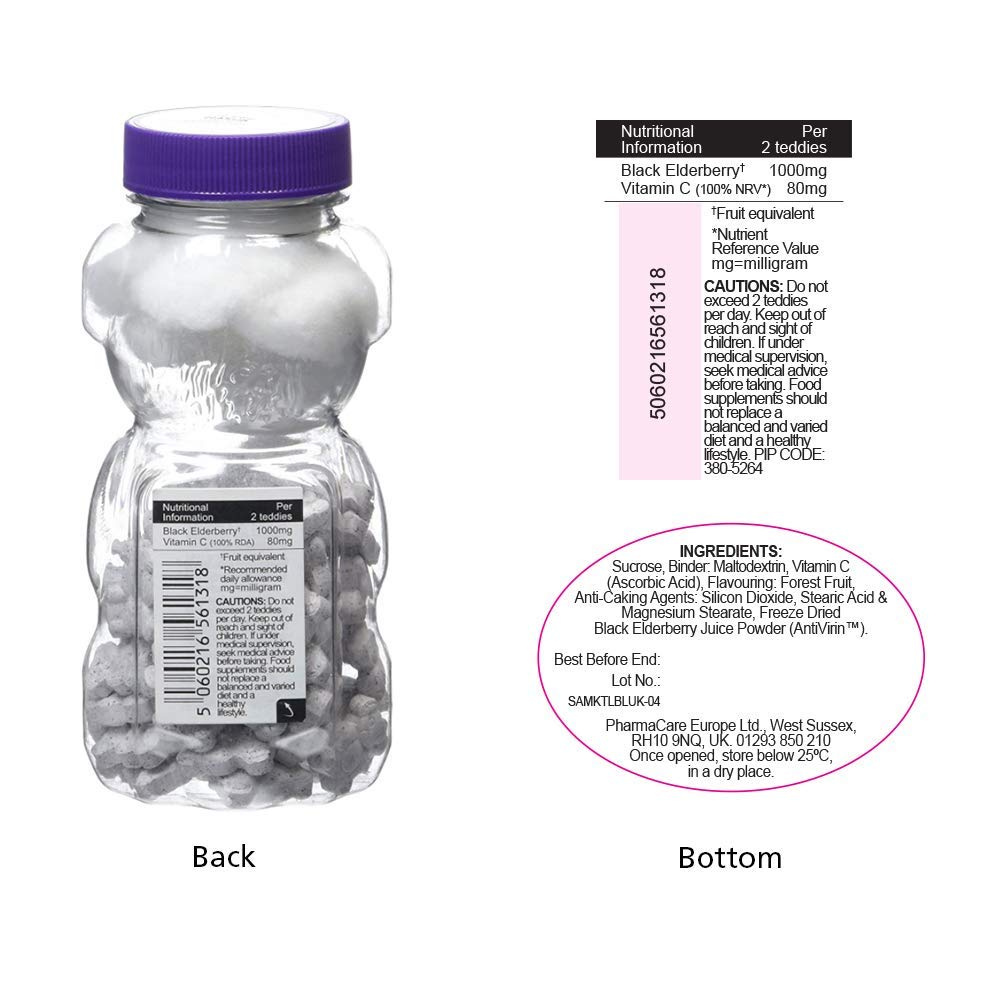 - KIDS IMMUNE SUPPORT - Sambucol Kids Teddies contain Black Elderberries as well as Vitamin C to help strengthen the immune system. Suitable for children aged 4+
