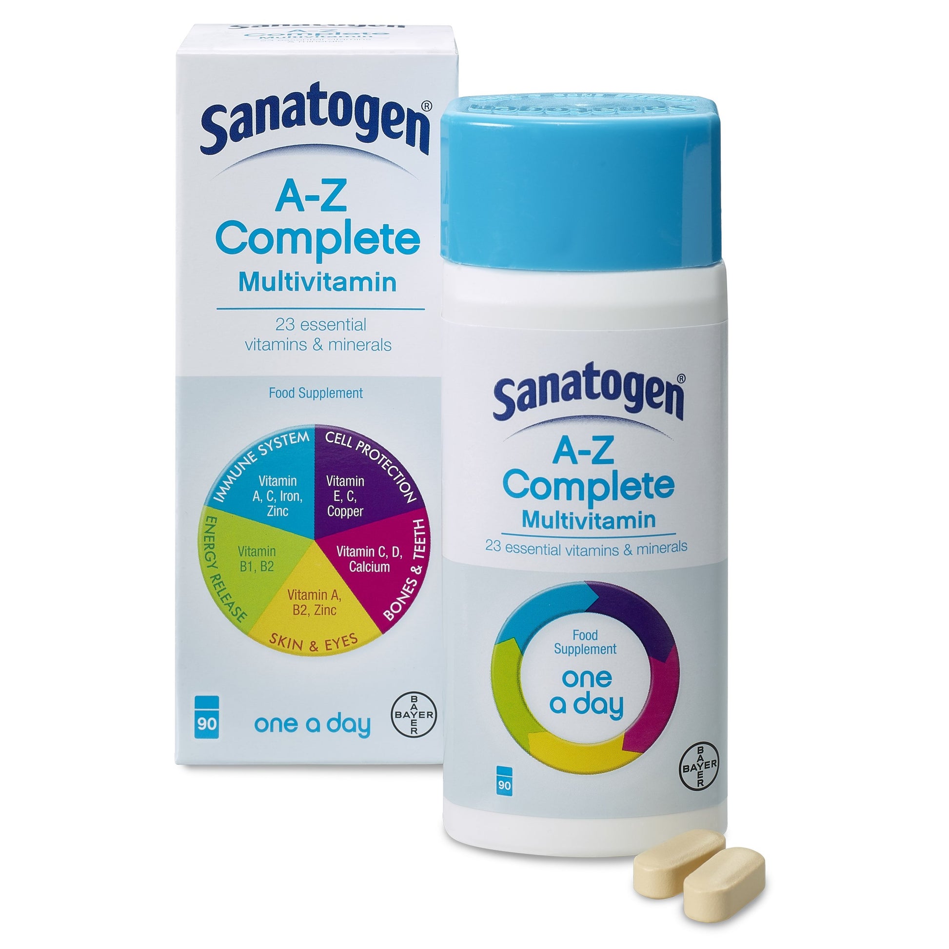 - Sanatogen A-Z Complete helps to maintain long-term health and wellbeing when taken daily: IMMUNE SYSTEM: Vitamin A, C, Iron, Copper, Selenium and Zinc contribute to the normal function of the immune system