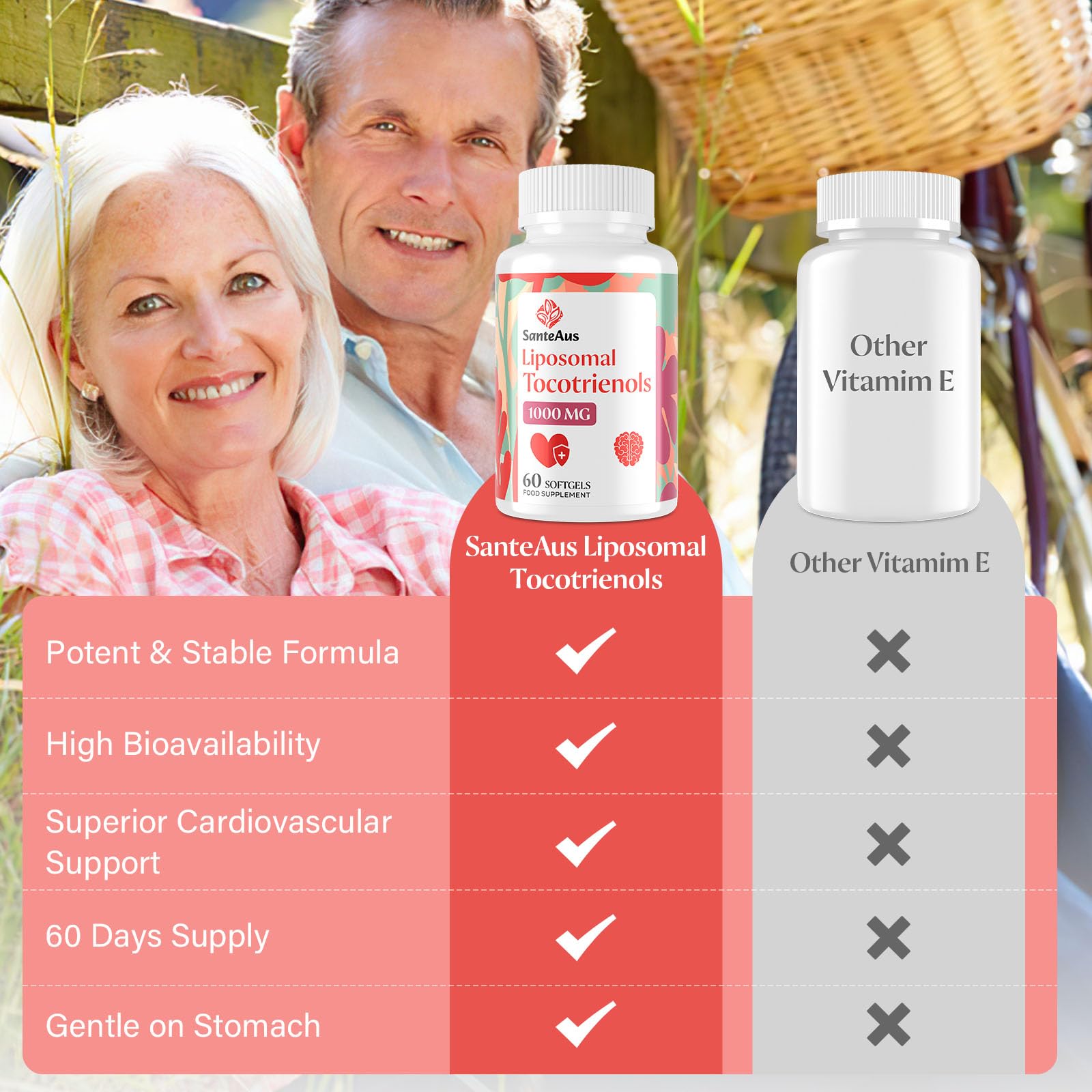 SanteAus Liposomal Tocotrienols Supplement 1000mg, Vitamin E, High Bioavailability, 95% Delta & 5% Gamma Tocotrienol Capsules, for Immune, Bone, Skin, and Antioxidant Support, No Fillers, No Soy, 2 Pack