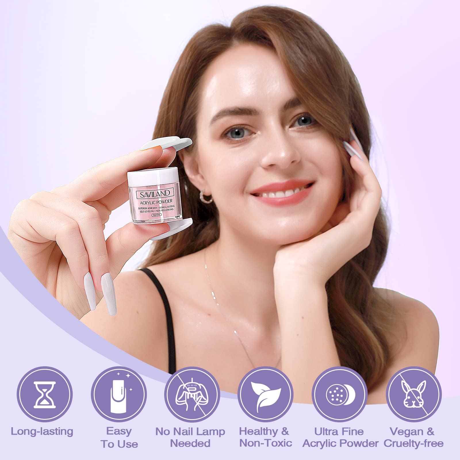 Saviland Acrylic Nail Kit - 45g White Pink Clear Acrylic Powder and Liquid Set with 3 Sizes Acrylic Nail Brush/Nail File/Nail Forms/Dappen Dish for Beginners Nail Extension Carving Acrylic Nail Set