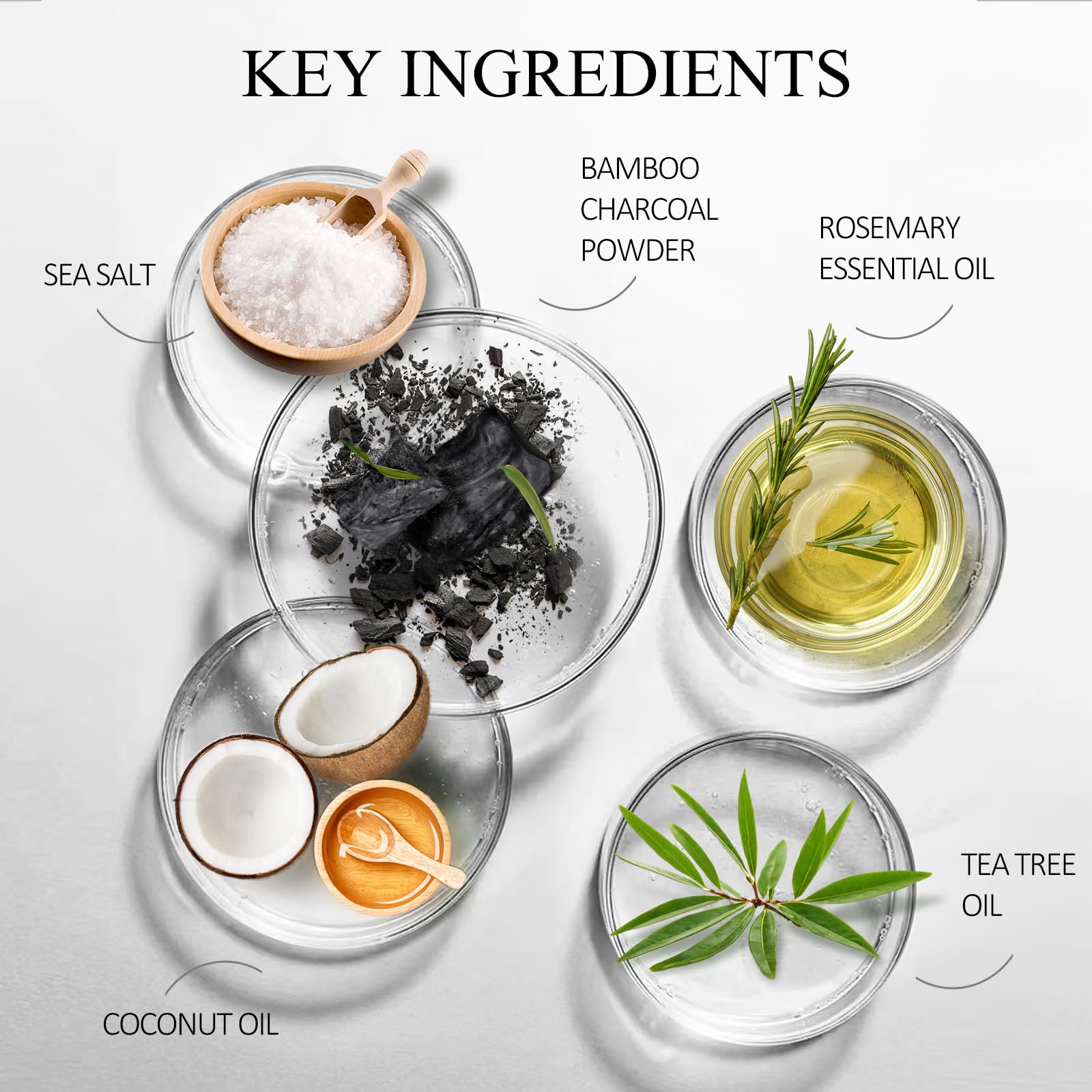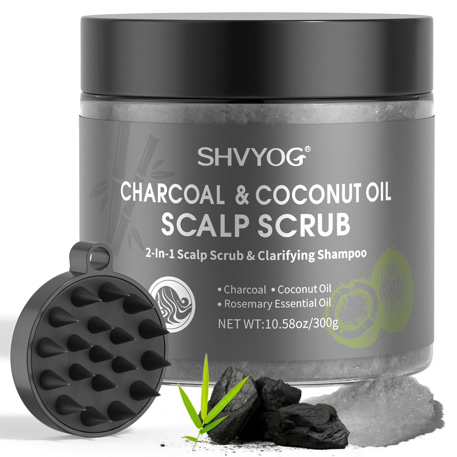 Scalp Scrub, SHVYOG Bamboo Charcoal Scalp Exfoliator, Coconut Oil Scalp Exfoliator Scrub for Build Up, Hair Treatment Nourishing Detox Hair Care with Scalp Massager, 10.58 oz