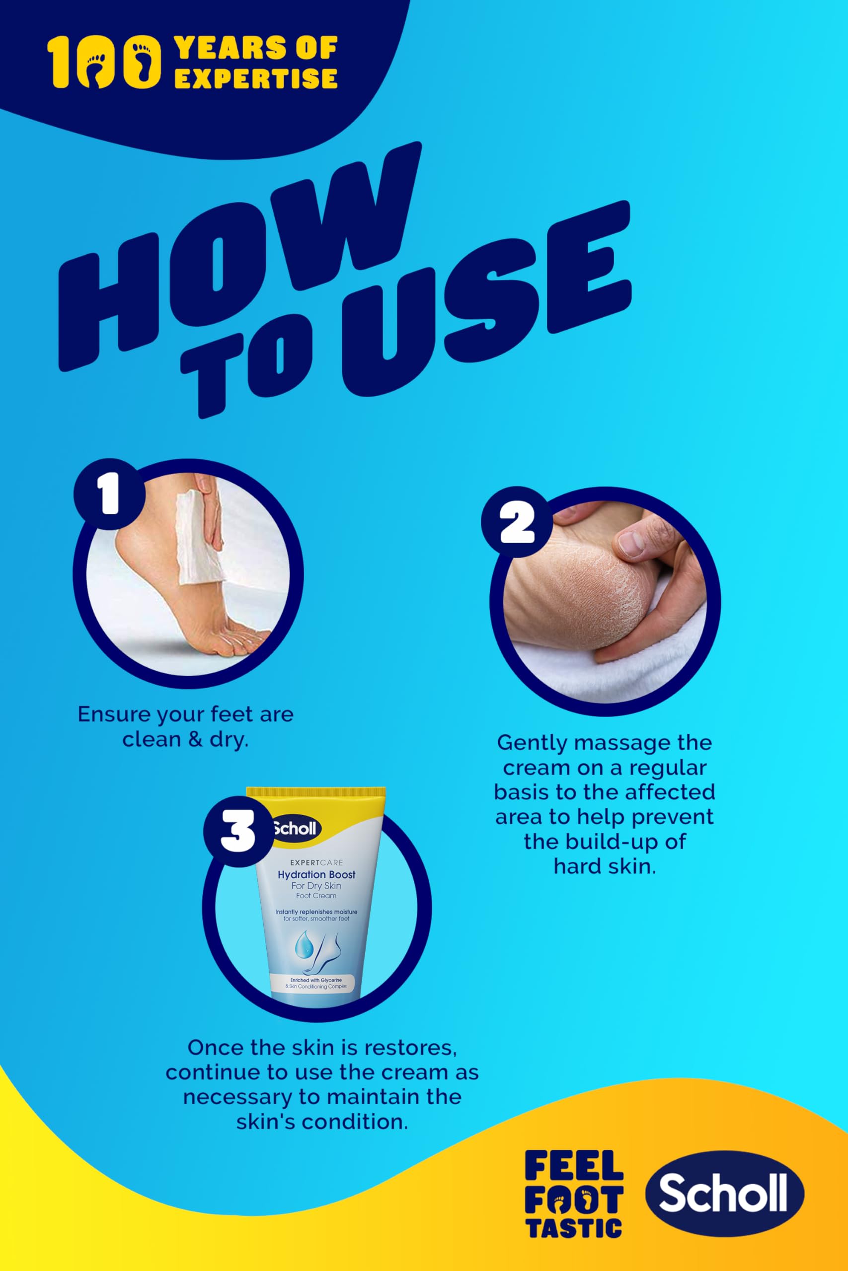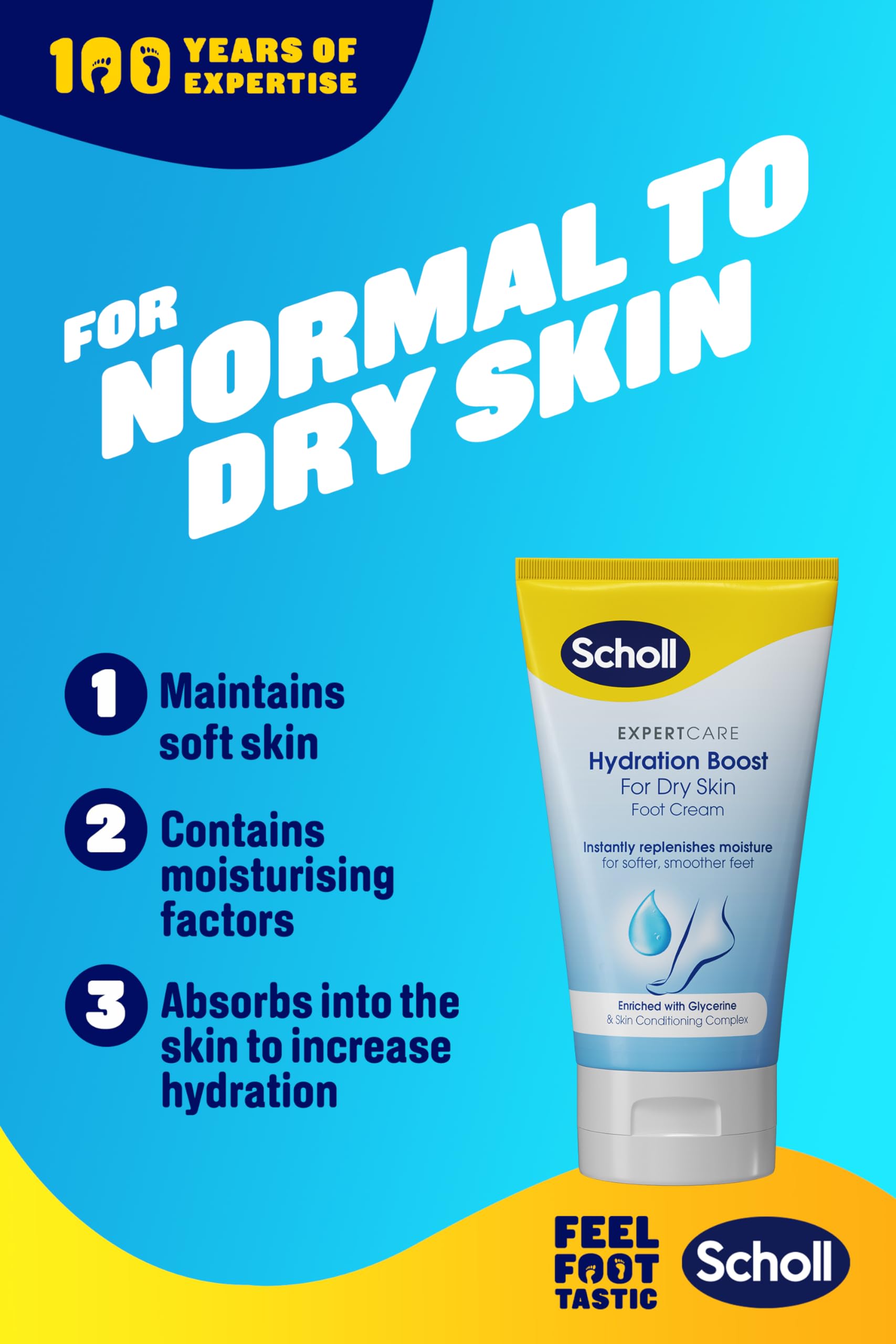 - DAILY HYDRATING CARE: Ideal for normal to dry skin, Scholl Hydration Boost daily moisturising cream is infused with Glycerine and a skin conditioning complex, offering dedicated hydration and care specifically tailored for the needs of foot skin.