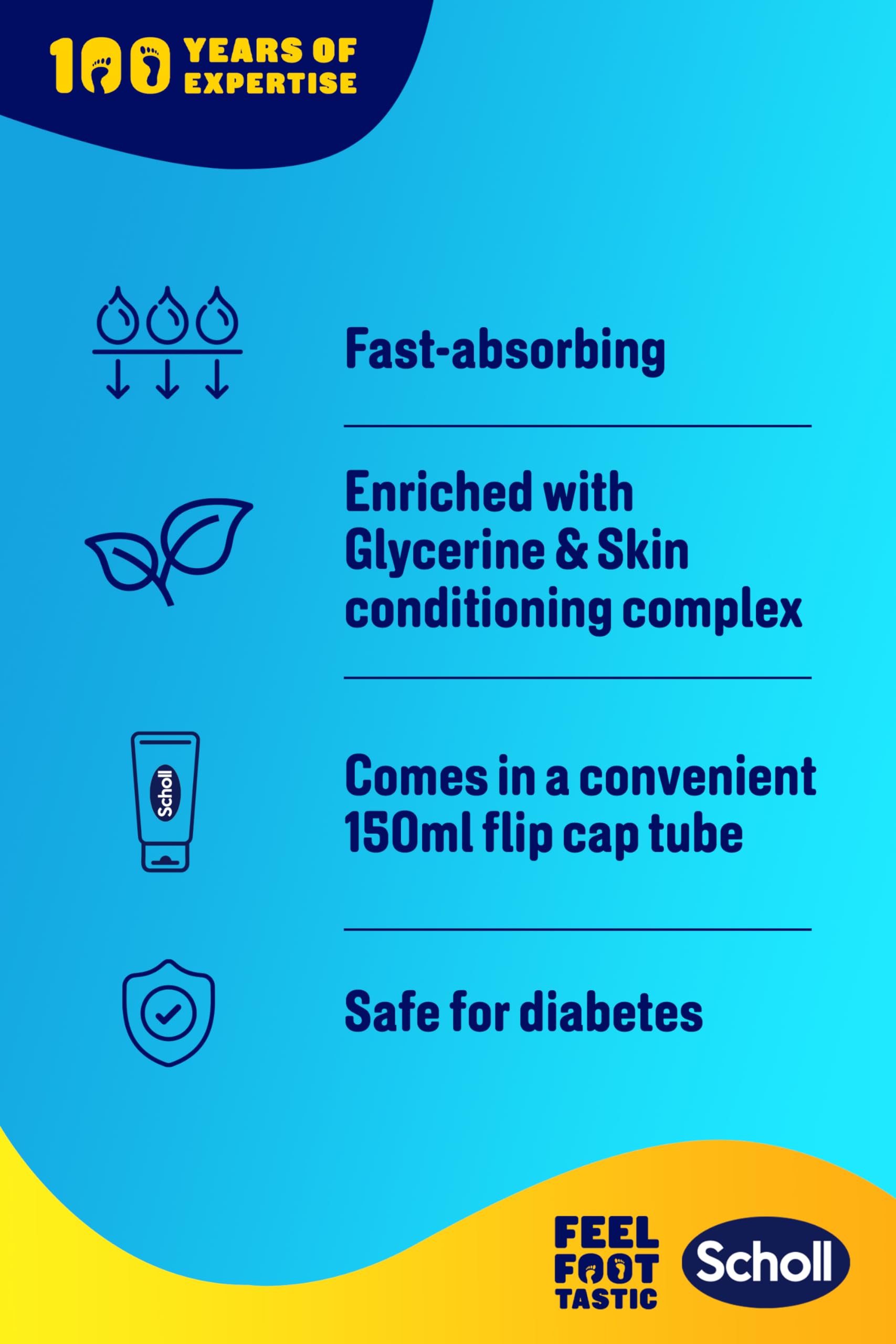 - SPECIALISED FOOT SKIN FORMULATION: Part of Scholl's specialised foot care range, this cream addresses the unique requirements of foot skin by providing targeted moisturisation to its thicker layers, ensuring dedicated and effective treatment.