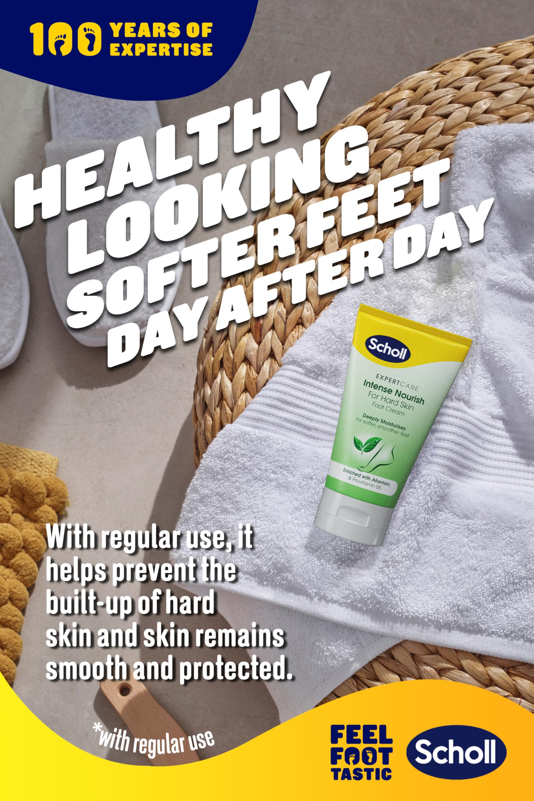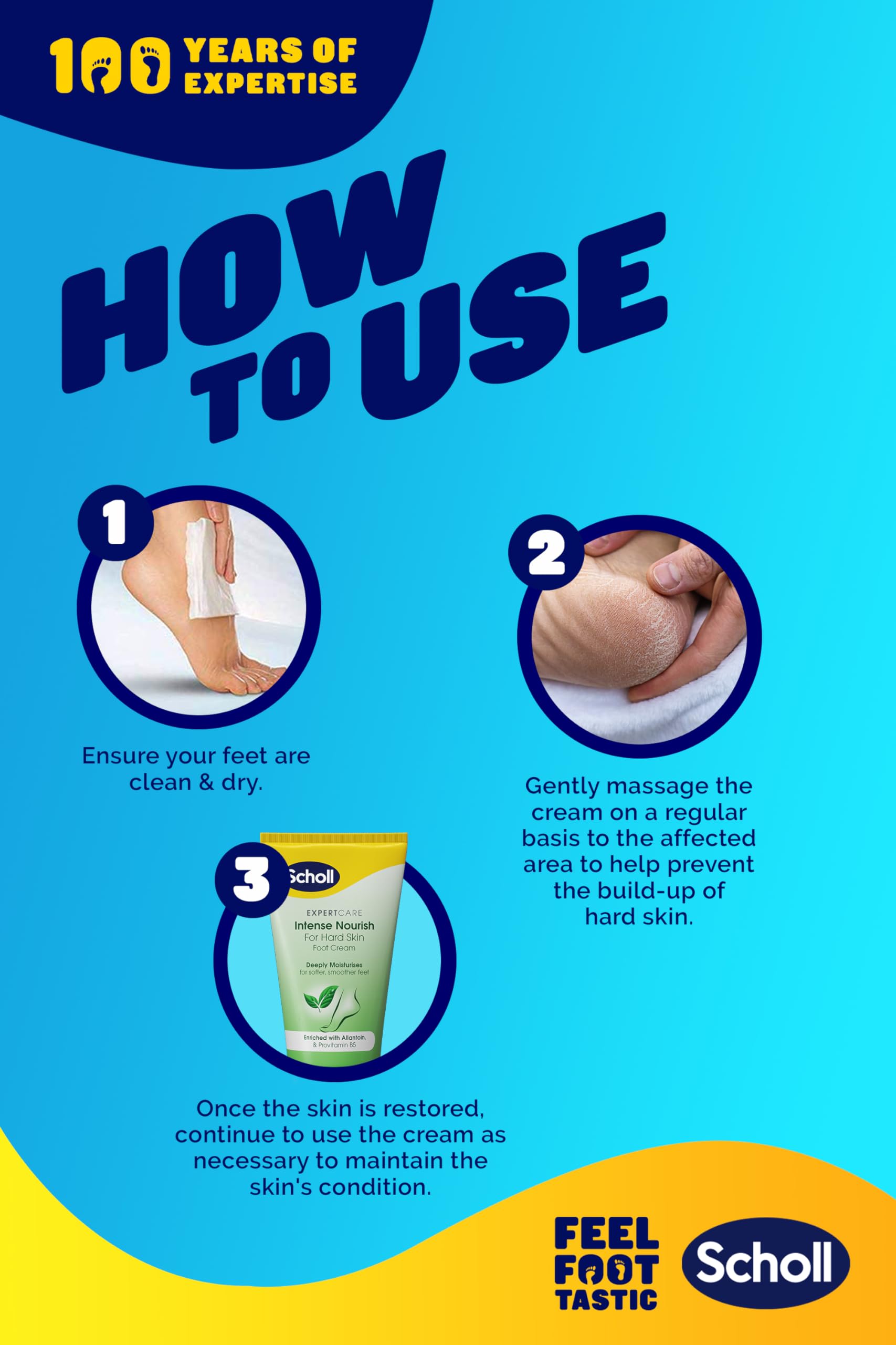 - PROTECTION AGAINST HARD SKIN FORMATION: By maintaining optimal moisture levels and nourishment, Scholl Intense Nourish cream not only hydrates but also safeguards against the hardening of skin and the development of calluses, ensuring feet stay soft and protected.