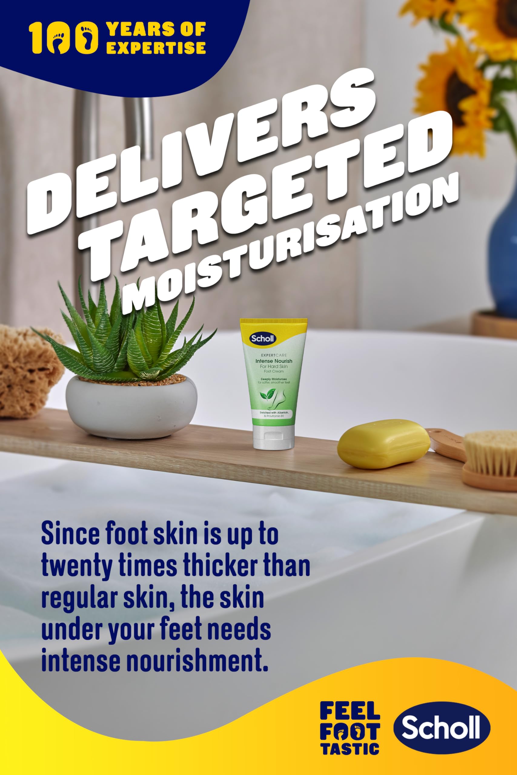 - INSTANT MOISTURE BOOST: Scholl ExpertCare Intense Nourish Foot Cream significantly enhances hydration levels, rapidly softening extremely dry and coarse skin for immediate relief.