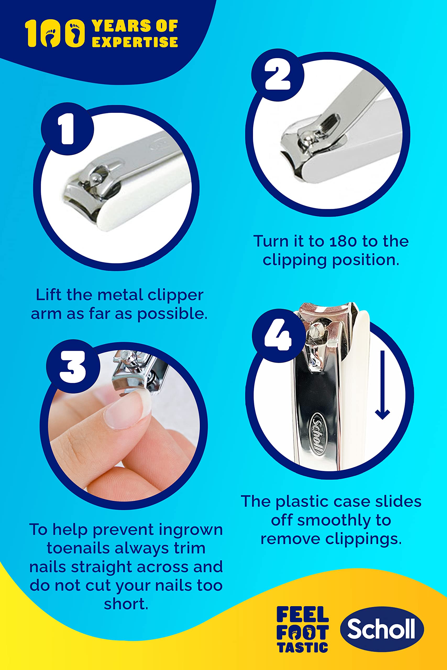 - Easy grip handle for safe use: scholl nail clippers are made with durable stainless steel and employ an easy-grip handle for maximum control when cutting