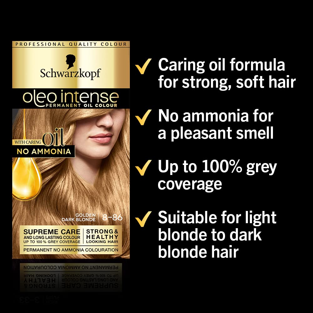 Schwarzkopf Oleo Intense, Permanent Blonde Hair Dye, Ammonia Free, Up to 100 Percent Grey Coverage, Golden Dark Blonde 8 - 86