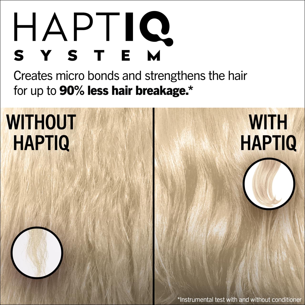 - With HaptIQ system: This hair mask features the HaptIQ system which creates new micro-bonds within the hair, whilst enveloping it with a protective layer and strengthening it for up to 90% less hair breakage*
