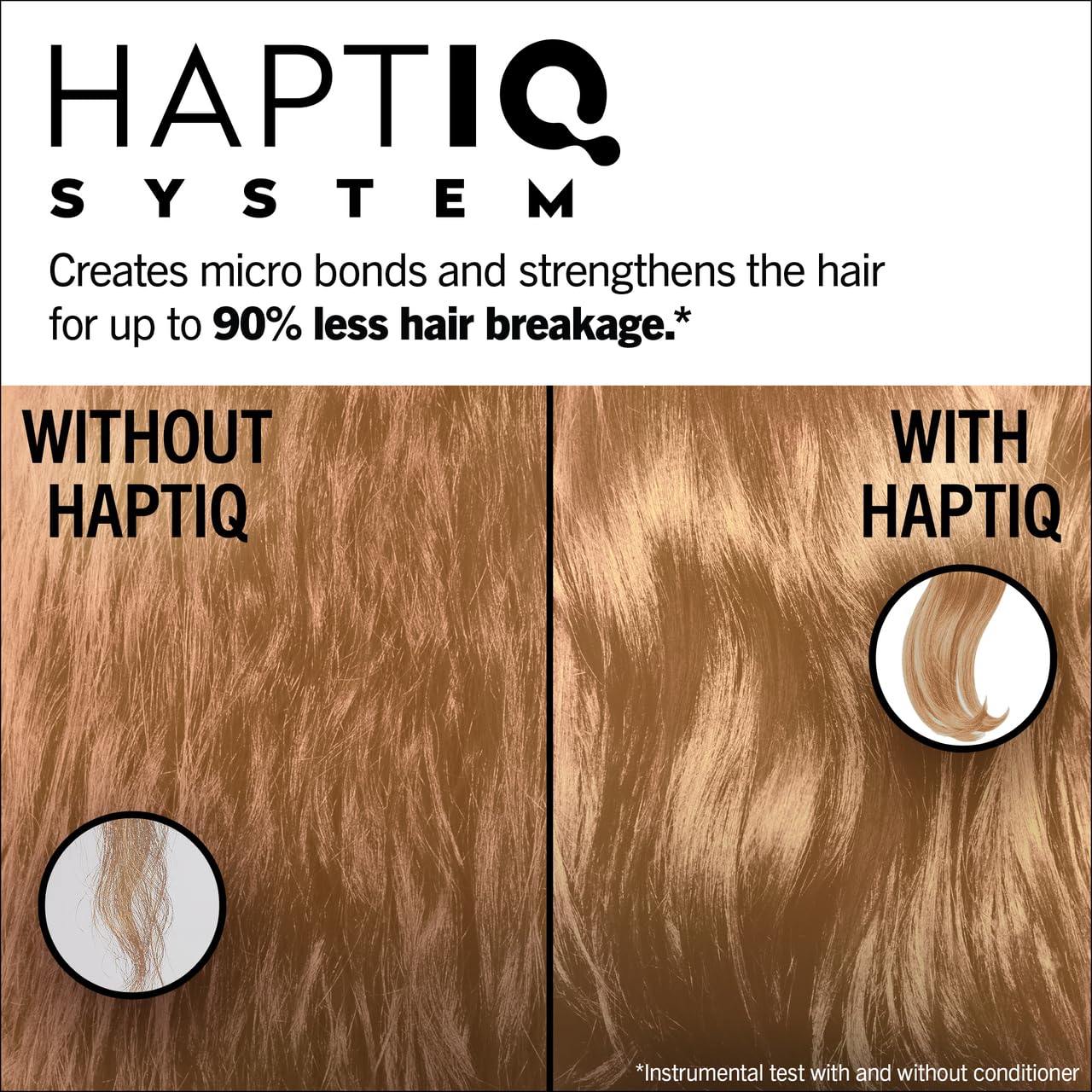 - With HaptIQ system: This hair mask features the HaptIQ system which creates new micro-bonds within the hair, whilst enveloping it with a protective layer and strengthening it for up to 90% less hair breakage*