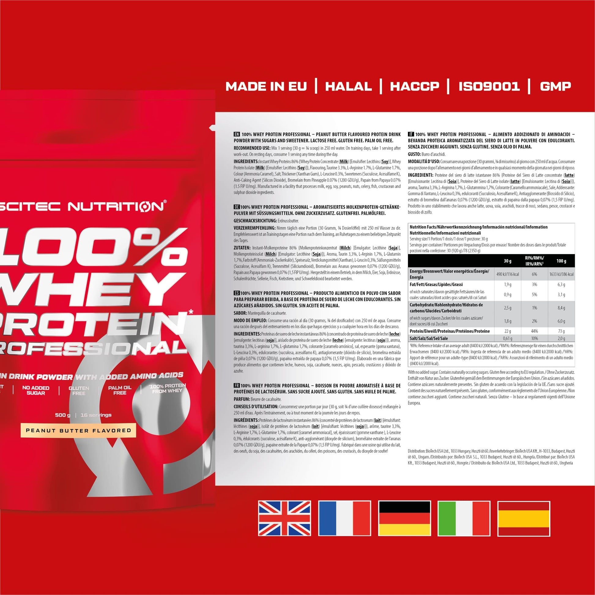 Scitec Nutrition 100% Whey Protein Professional – Enhanced with Extra Amino Acids & Digestive Enzymes – Gluten-Free – Palm Oil Free, 500 g, Peanut Butter