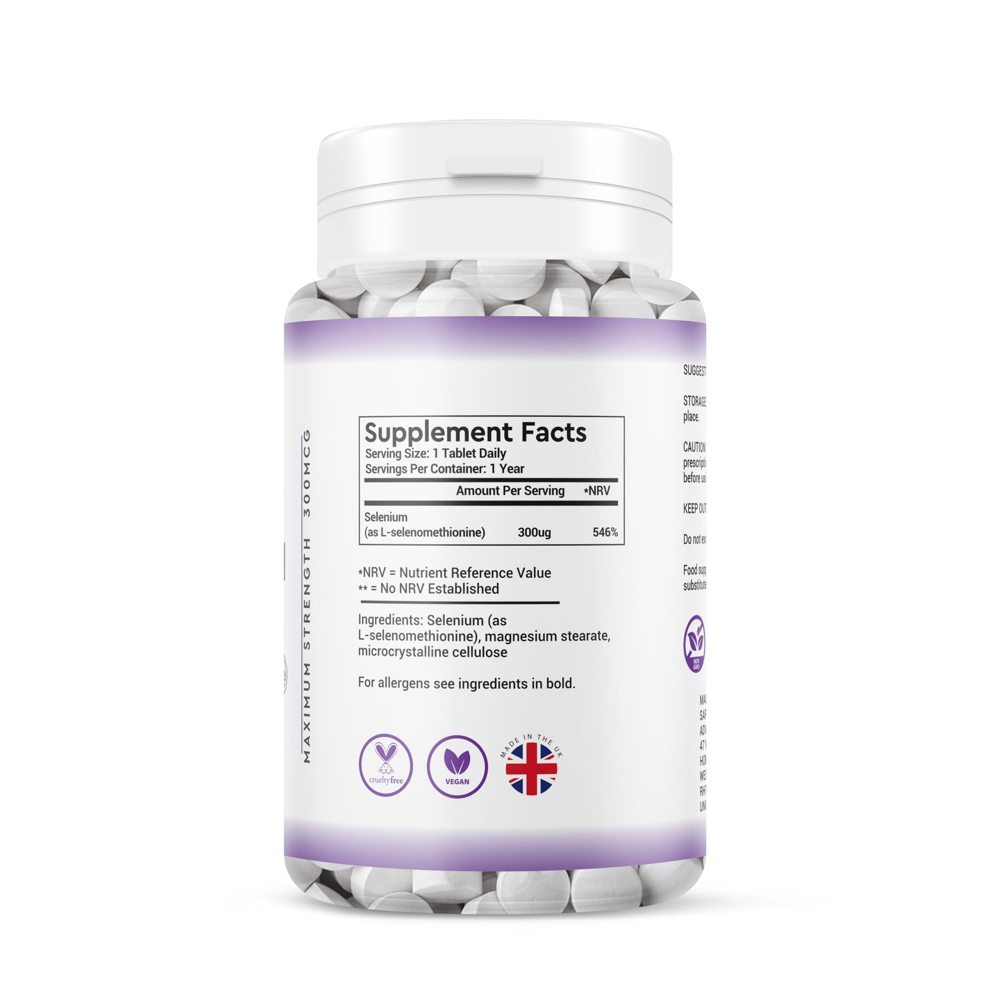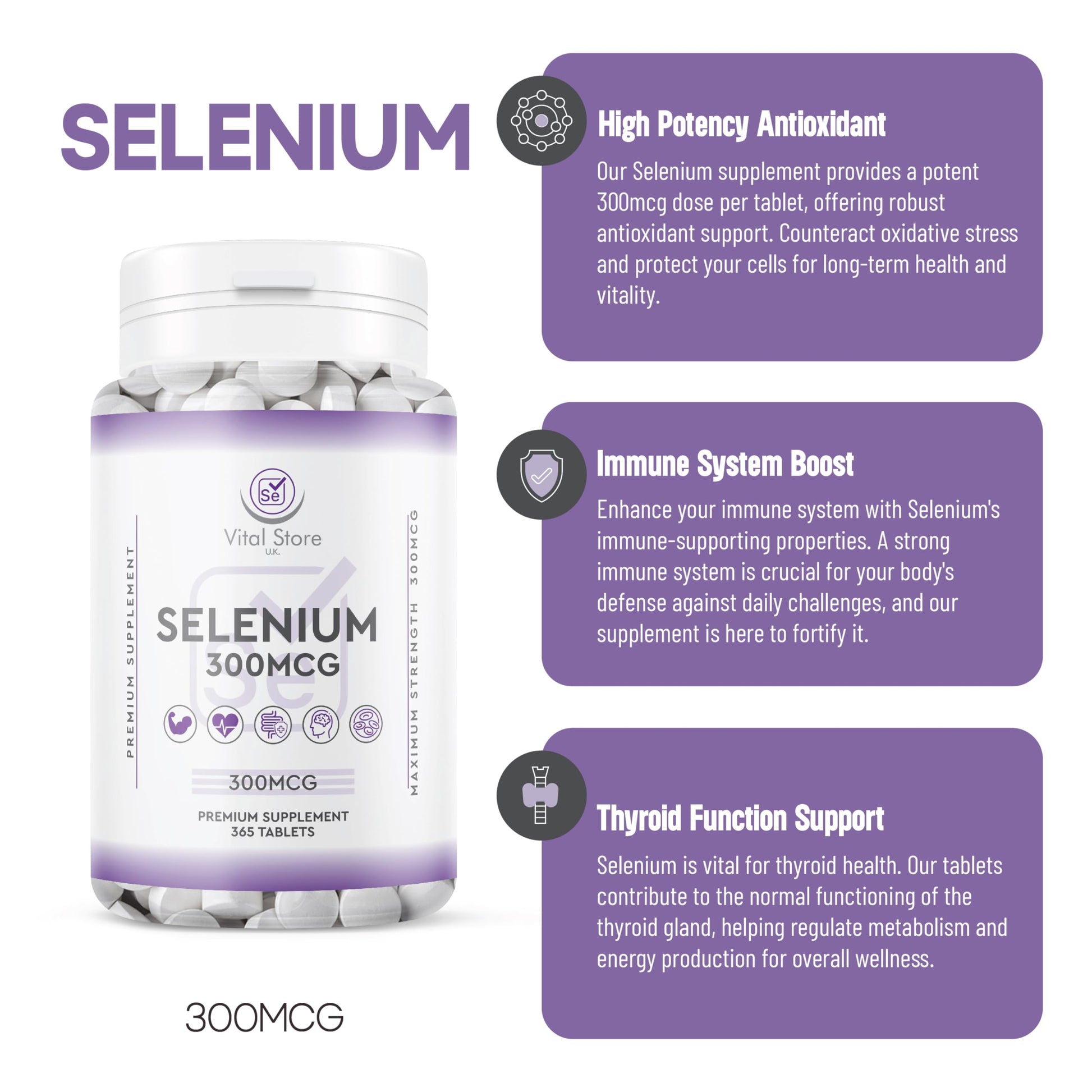 Selenium 300MCG - 1 Year Supply 365 Tablets - Antioxidant, Immune Support Vegan Selenium Supplement