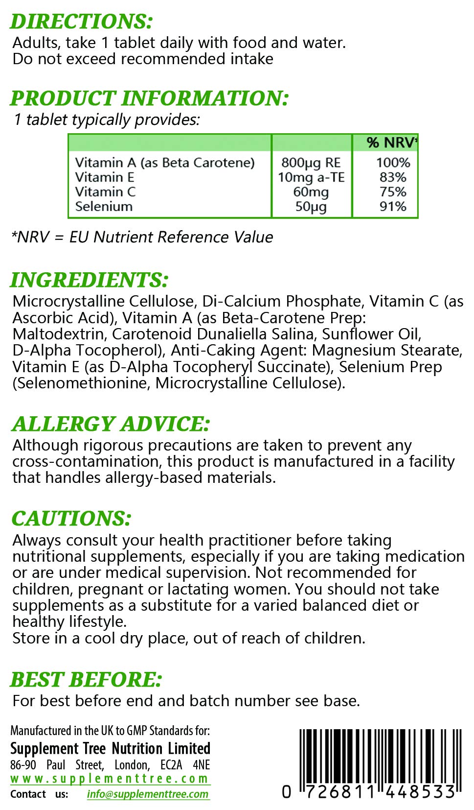 Supplement Tree Selenium ACE is manufactured in the UK to GMP code of practice and ISO 9001 quality assurance certification.
