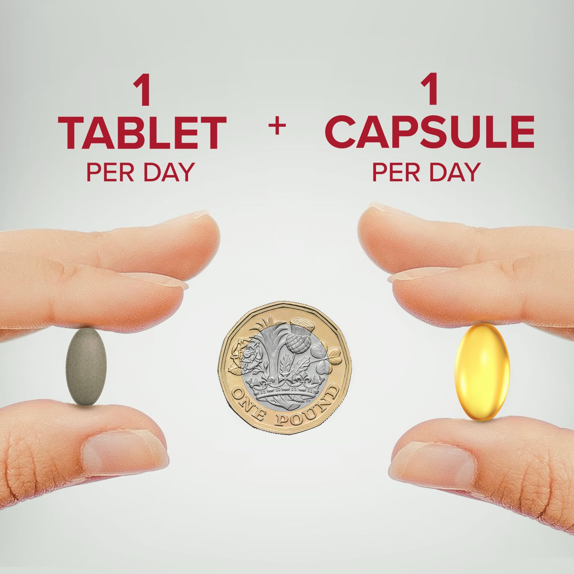 - CONVENIENT DUO PACK: For adults 18+, Take 1 tablet (pink blister) and 1 capsule (red blister) a day with a glass of cold water during or just after a meal