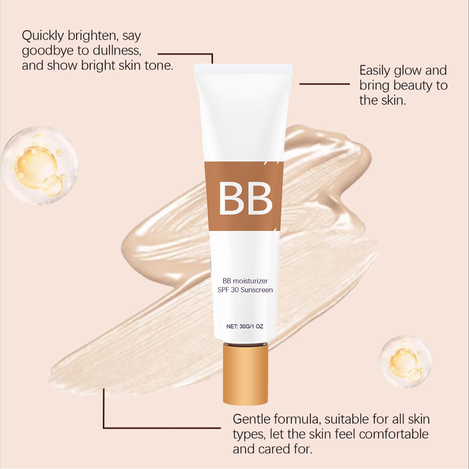 SHEBEEDO 2Pcs BB Blur Tinted Moisturizer with Brush, BB Cream Tinted Moisturiser, BB Tinted Moisturiser Spf30+, BB Cream Tinted Moisturizer with Broad Medium Spectrum,Hydrates & Smooths Your Skin(Natural)