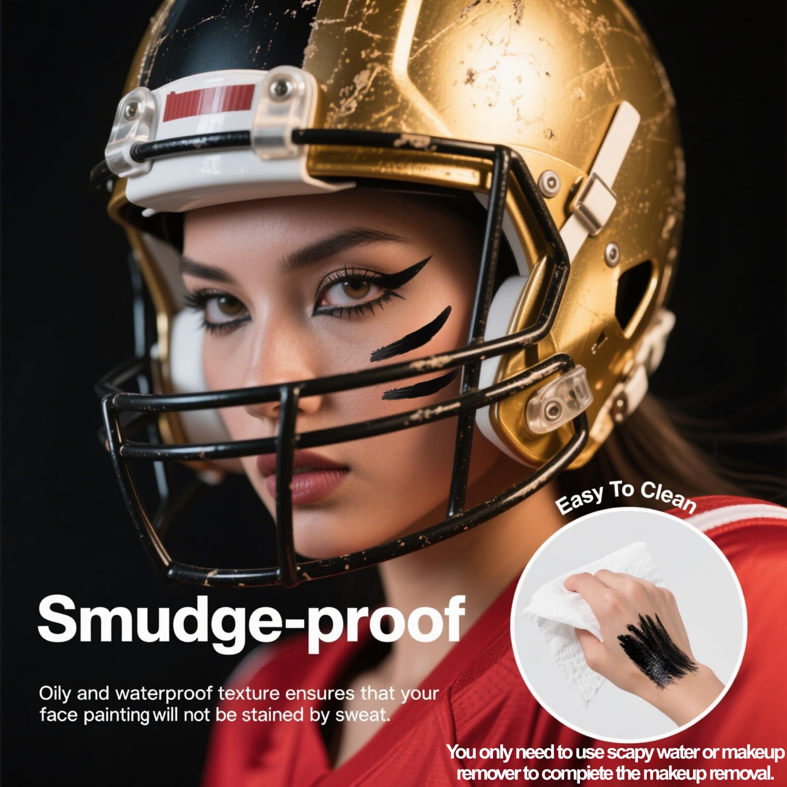 Our face paint sticks are designed to be a versatile solution for all your black makeup needs. Whether you're an athlete looking to show team spirit or a makeup enthusiast creating bold looks, these black lipstick deliver consistent results.Features: