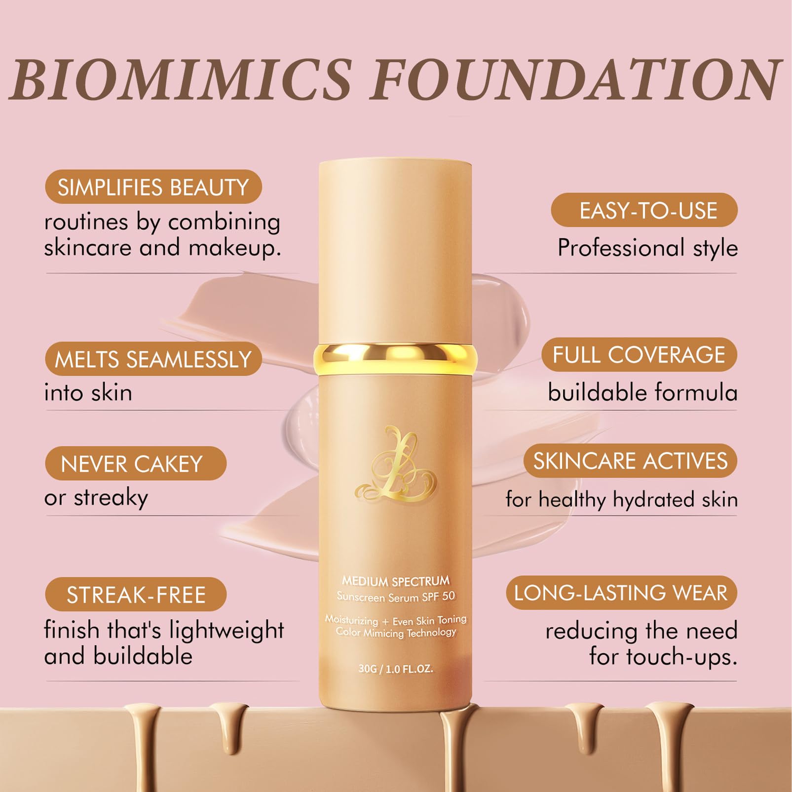 SHEBEEDO Biomimic Foundation 4 In 1,Medium Spectrum With Spf50+,Hydrating Medium Full Coverage Concealer,Hydrating Color Changing Foundation,Long Wear&Waterproof Light Spectrum Foundation For Women,30ml
