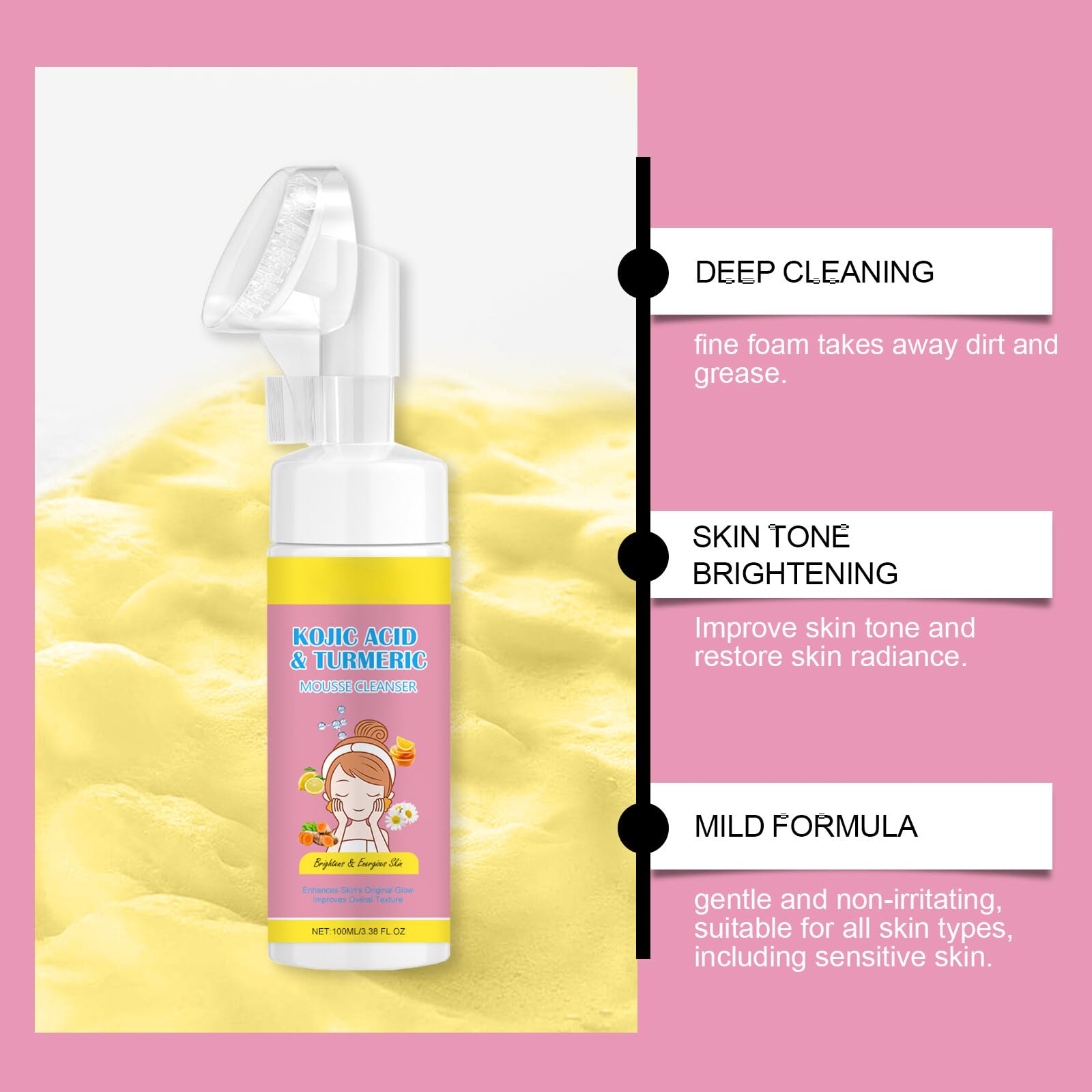 The turmeric kojic acid foaming face cleanser women deeply cleanses and removes impurities and produces a very soft and smooth lather that deeply cleanses pores and is easy to clean.