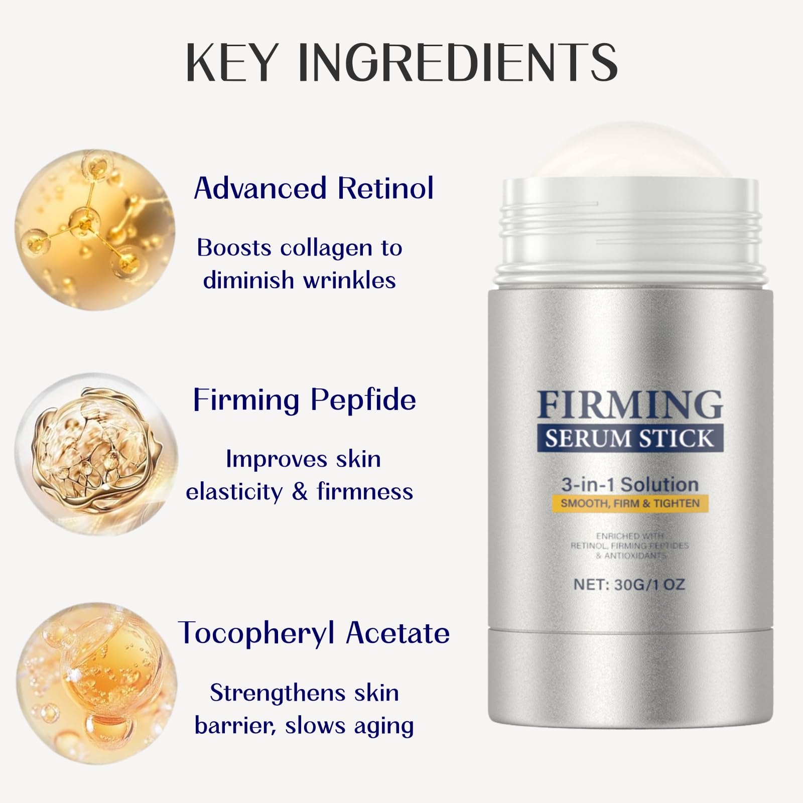 ✔ Anti-wrinkle firming serum stick – Stimulates collagen production over time