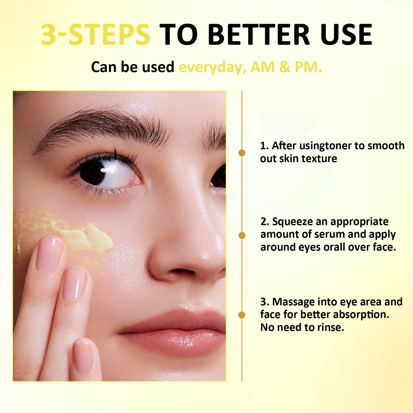 1️⃣ Apply a pea-sized amount nightly to clean under-eyes.