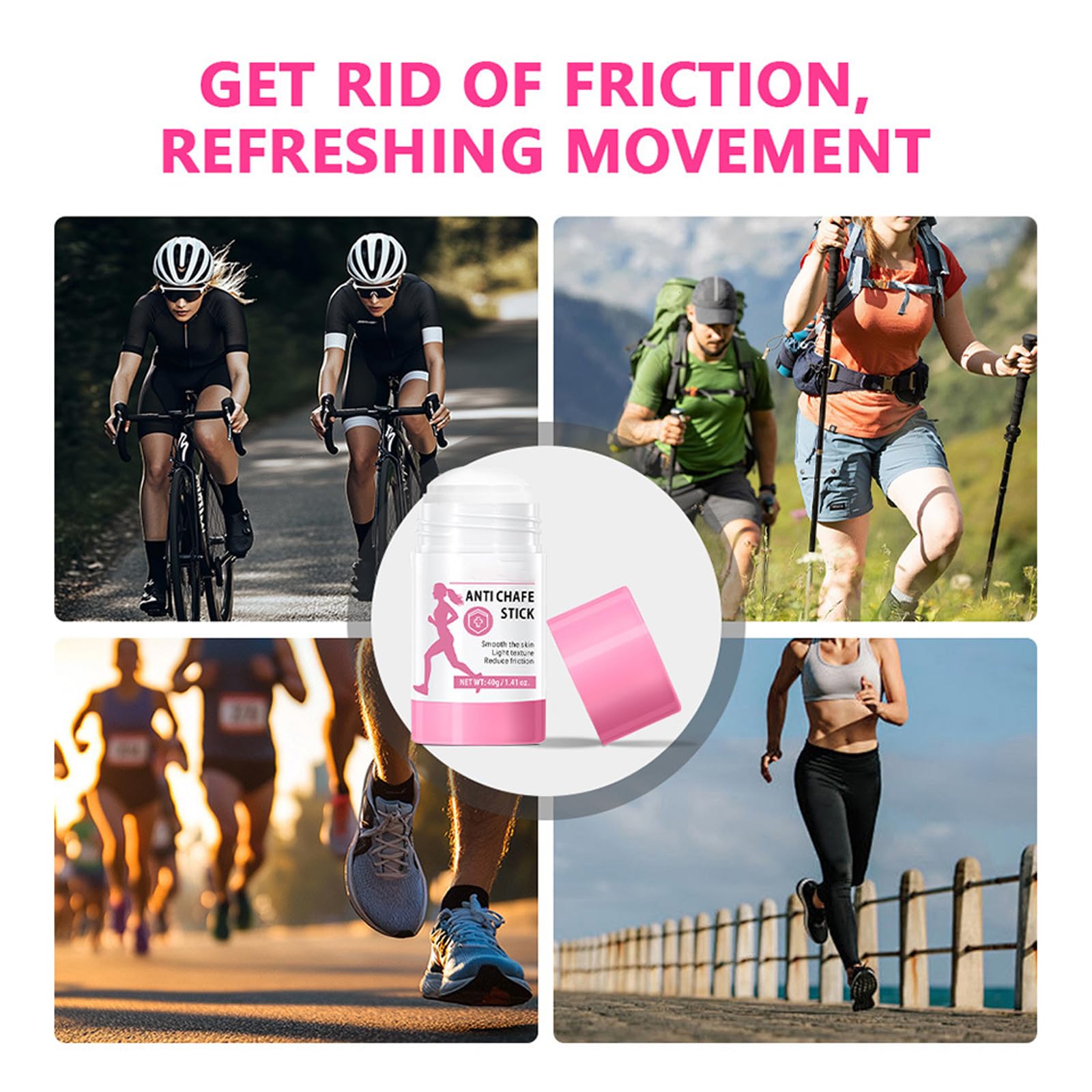 Our anti chafe products, including anti chafe balm and chafe stick, are designed to combat skin friction. Ideal for daily life, sports like cycling/running, and travel, they create a protective layer to keep skin comfortable.