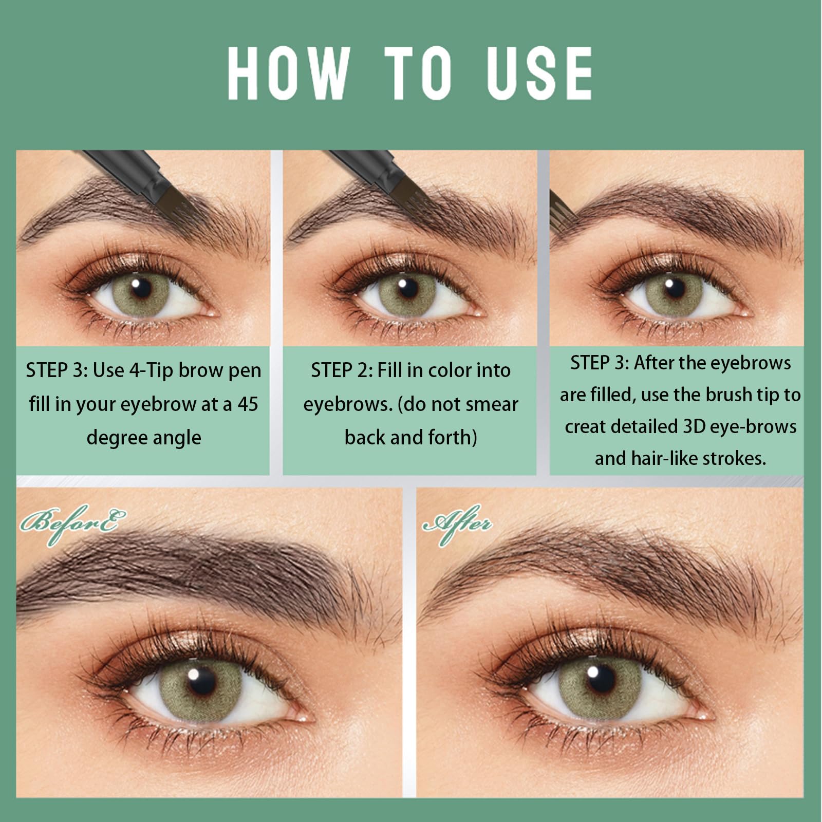 Achieve the perfect brows with our innovative 4-tip brow pen. This eyebrow pen is designed to create natural, 3D eyebrows with ease. The unique 4-tip applicator allows for precise, hair-like strokes and efficient filling of sparse areas, ensuring a flawless look that lasts all day. Elevate your beauty routine with the beauty brow and redefine your eyebrows with confidence.