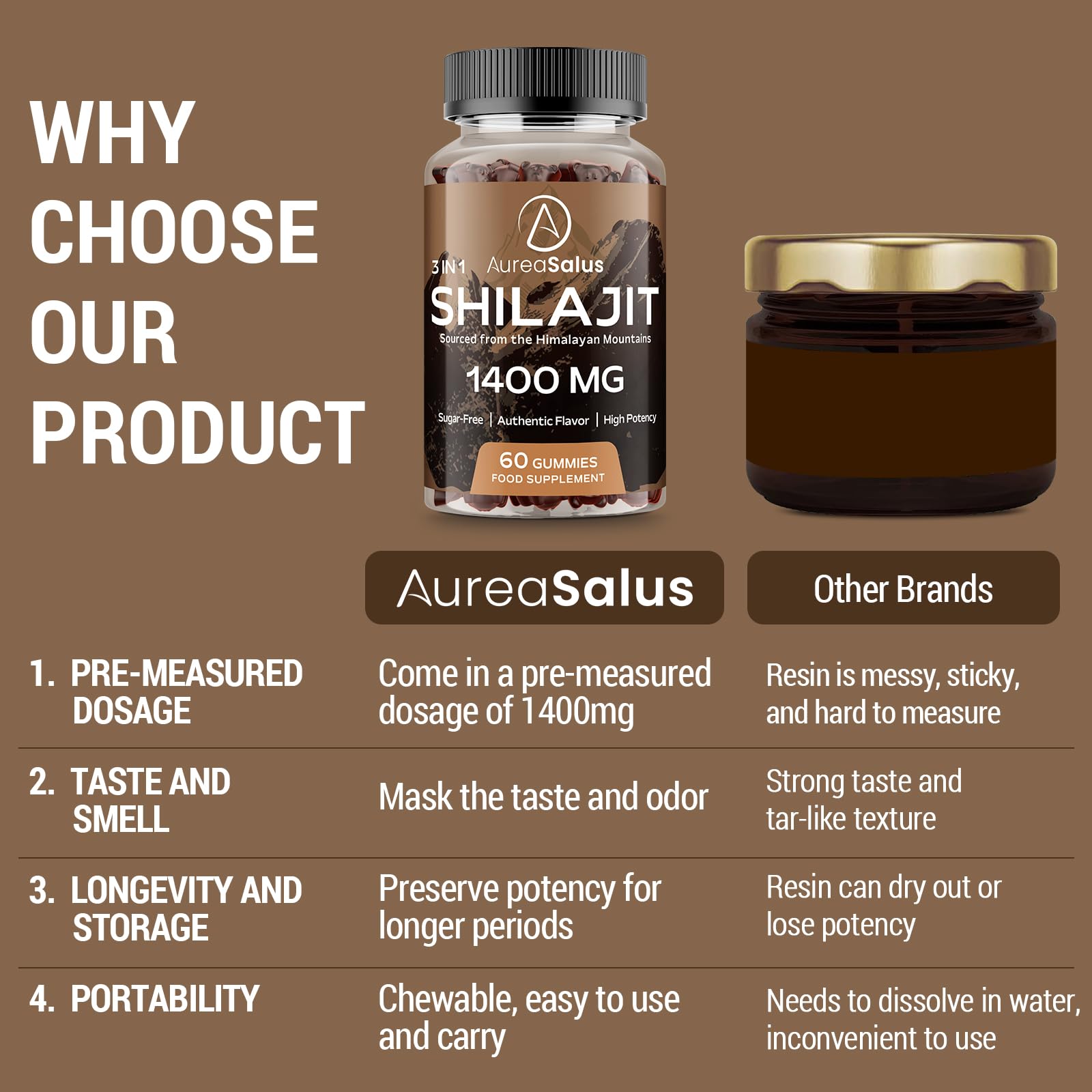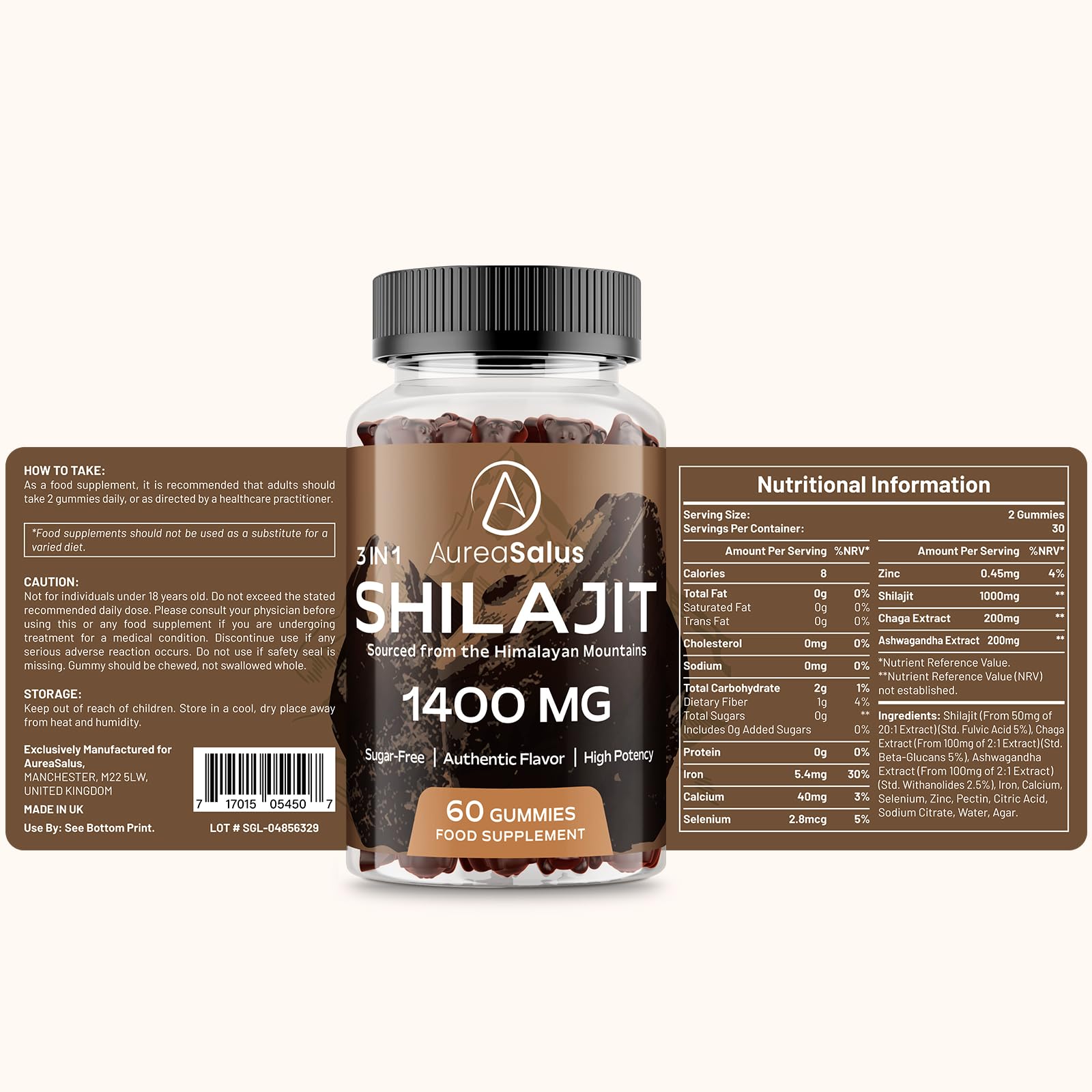 Shilajit Gummies 1400mg, Shilajit Supplement with Chaga and Ashwagandha, Original from Himalayan with Fulvic & Humic Acid and 85+ Minerals, for Energy, Immunity & Focus, Sugar-Free, 120 Gummies