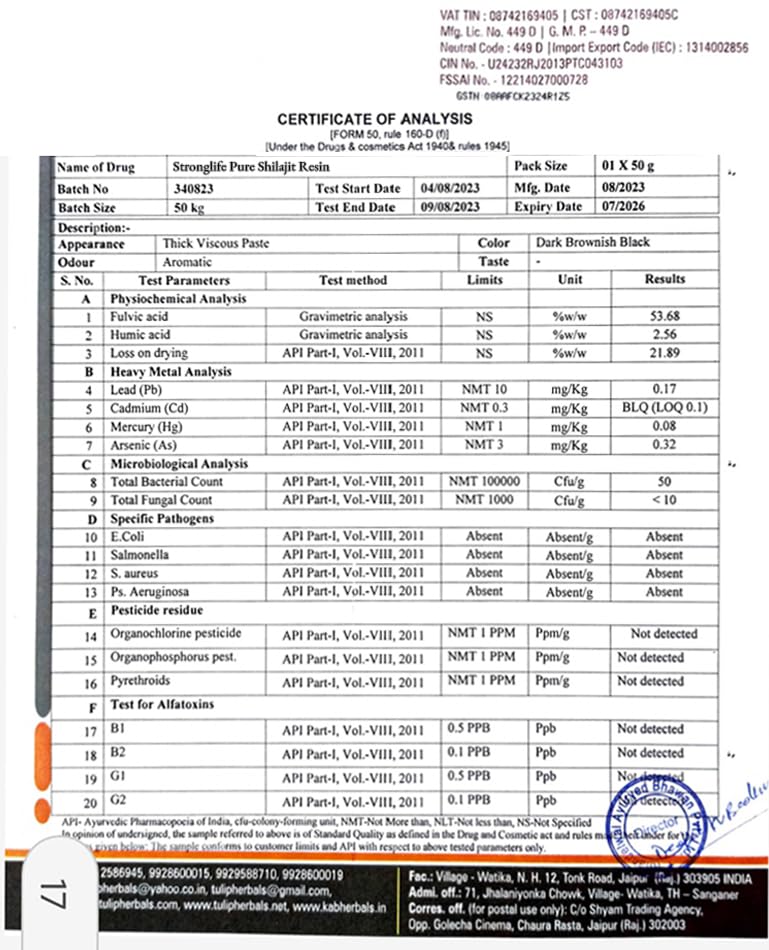 STRONGLIFE Shilajit is purified using Vapoured Distilled Water.