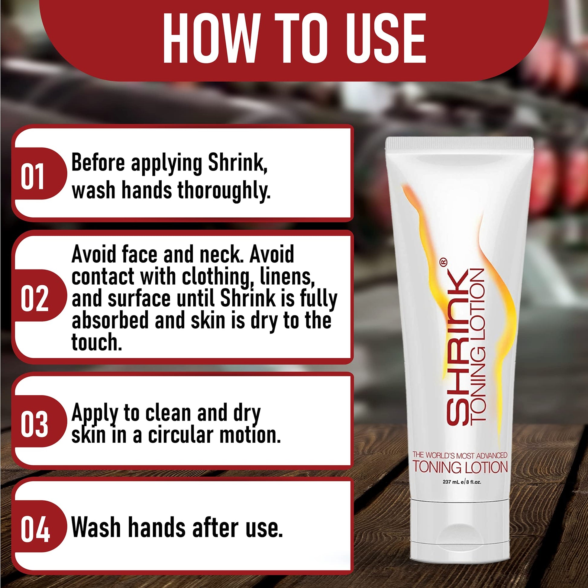 Shrink is a highly advanced toning lotion designed for fitness management and support cellulite reduction. This formula is effective for both men and women. When used consistently, Shrink tones and tightens the skinMore Info