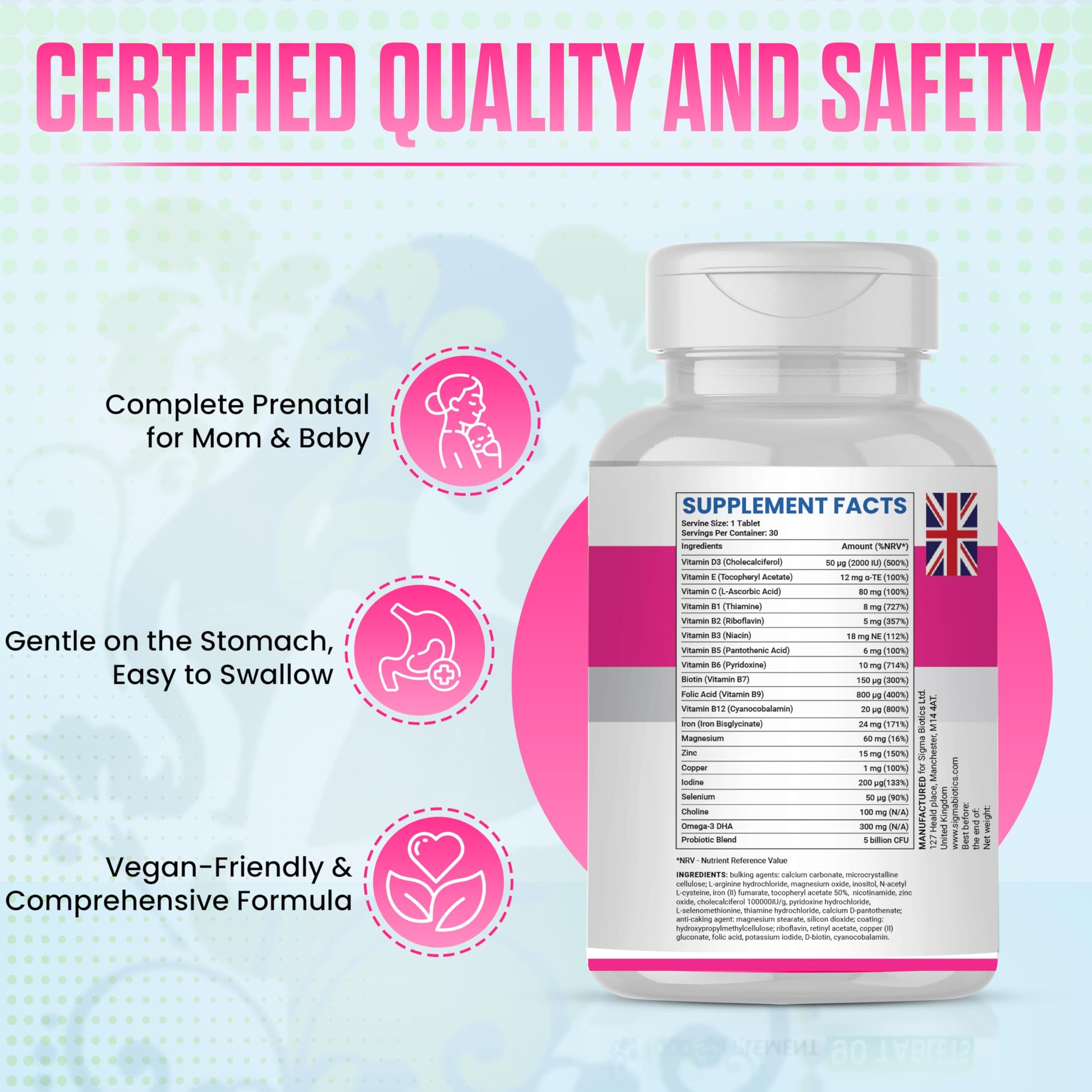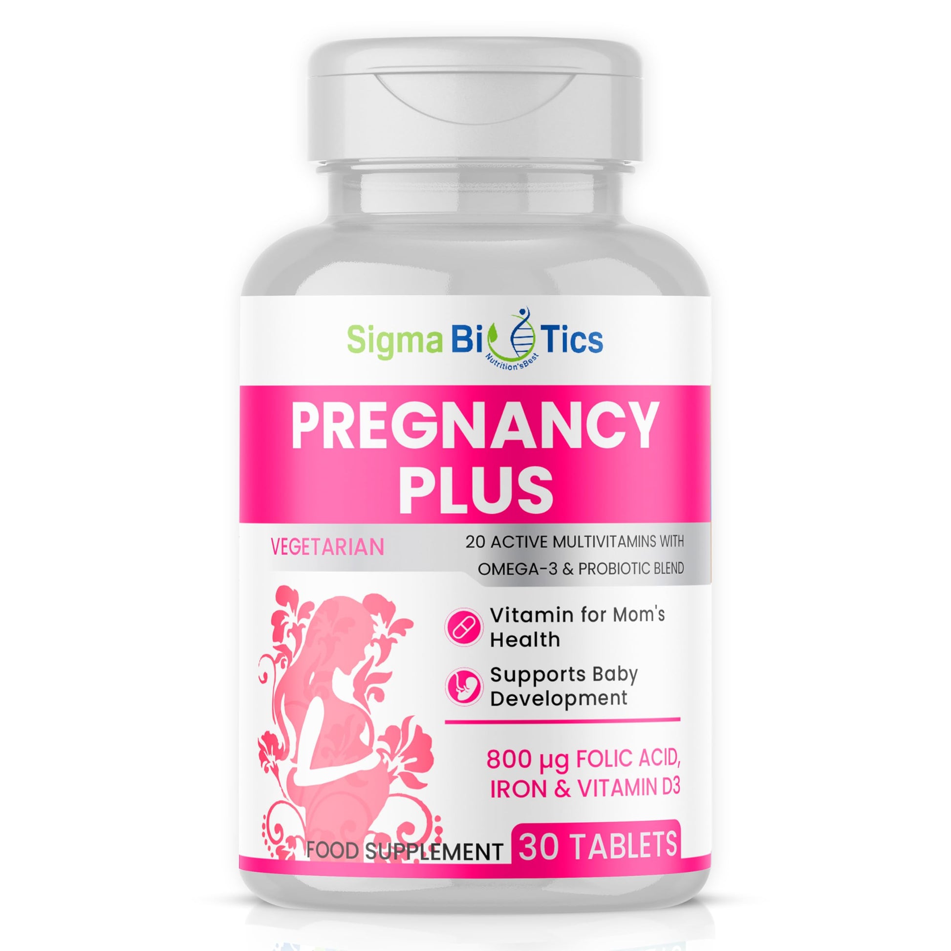 Complete Prenatal Support for Every Stage – Trying to Conceive, Pregnancy & Postnatal Pregnancy Plus by SigmaBiotics is a comprehensive, once-daily prenatal multivitamin designed to support women through conception, all three trimesters, and recovery after birth. With 20 expertly selected nutrients, it helps fill nutritional gaps and supports your body and baby throughout the journey. 🌿 Key Ingredients & Benefits ✔ Folic Acid 800µg – Contributes to maternal tissue growth and supports neural tube development during early pregnancy ✔ DHA + Omega-3 – Plant-based DHA (Omega-3) supports your baby’s brain and eye development ✔ Iron + B12 – Reduces tiredness and fatigue while supporting red blood cell formation ✔ Vitamin D3 (2000 IU) – Supports bone health and immune function for both mum and baby ✔ Probiotics (5 Billion CFU) – Supports digestive health, nutrient absorption, and immunity ✔ Choline, Zinc, Biotin – Essential for cognitive development, hormonal balance, and energy metabolism 💊 Gentle, Convenient & High Quality Only 1 vegetarian tablet per day Easy to swallow and gentle on sensitive stomachs Free from gluten, dairy, soy, and artificial colours Non-GMO and made in the UK under strict GMP and HACCP standards Third-party tested for quality, purity, and safety Whether you’re trying for a baby, in the first trimester, or looking to replenish nutrients post-birth, Pregnancy Plus provides complete daily support – all in one convenient formula. 🛡️ Why Choose Sigma Biotics Pregnancy Plus? ✔ Science-backed formulation ✔ Suitable for vegetarians ✔ Developed with women’s health in mind ✔ Trusted by mums and recommended by practitioners Support your body. Support your baby. Choose Pregnancy Plus – Premium Nutritional Support for Motherhood.More Info